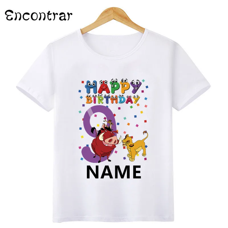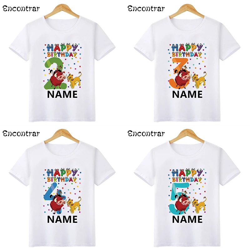 Милая мультяшная футболка с симбой Король Лев для мальчиков на день рождения, женская футболка, топы для маленьких девочек, детская одежда для вечеринок, HKP2469