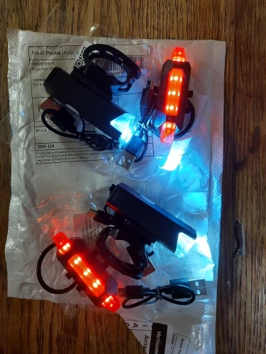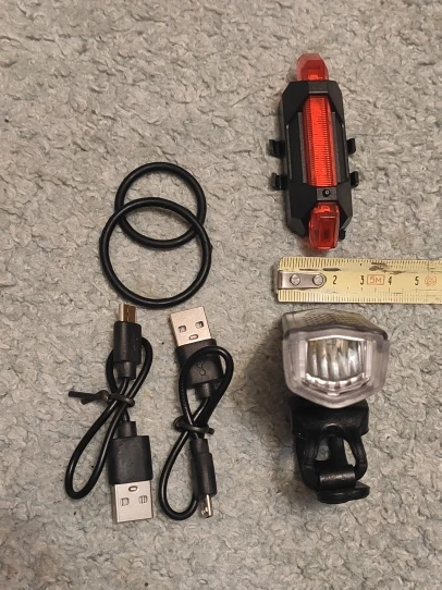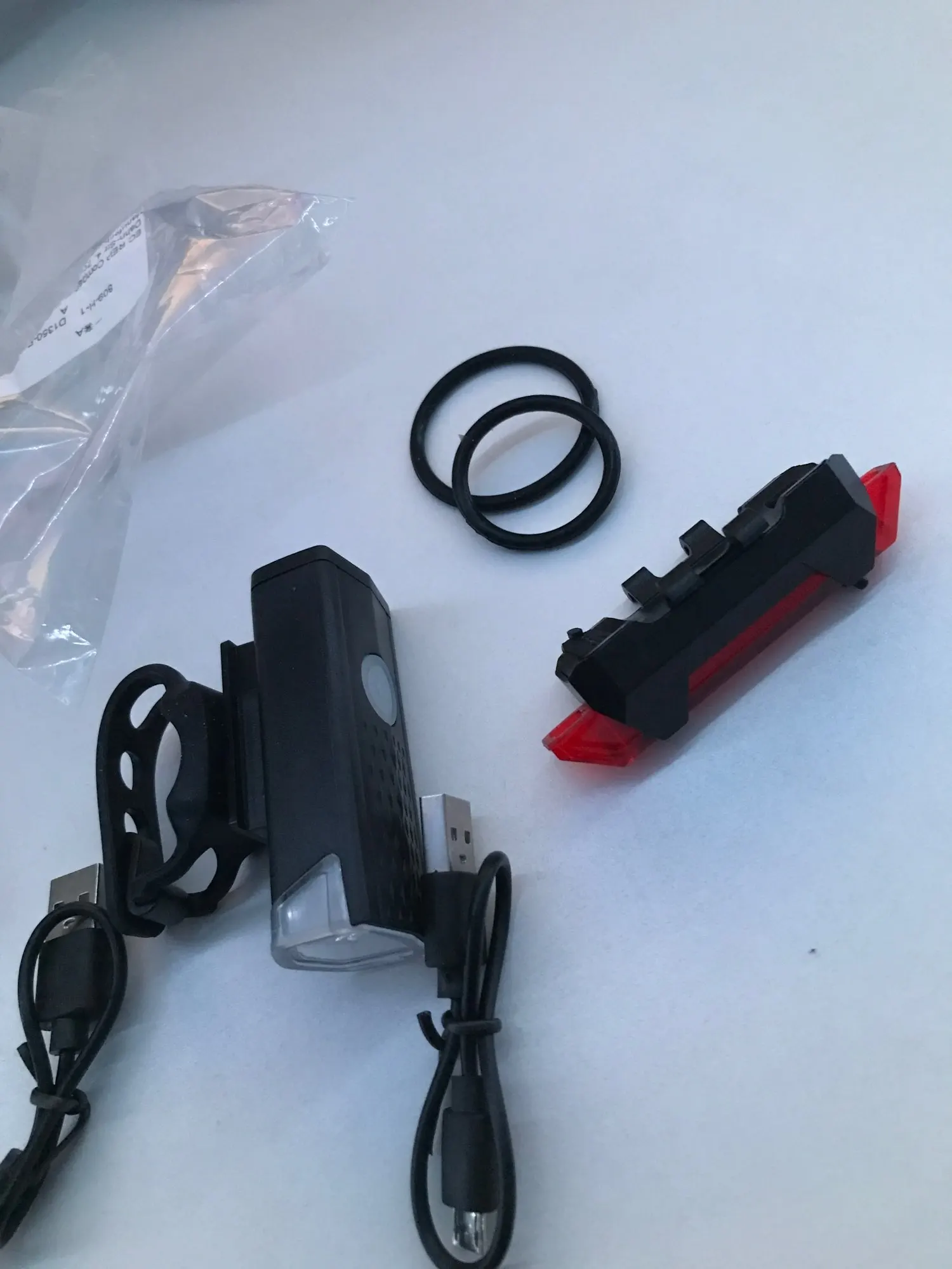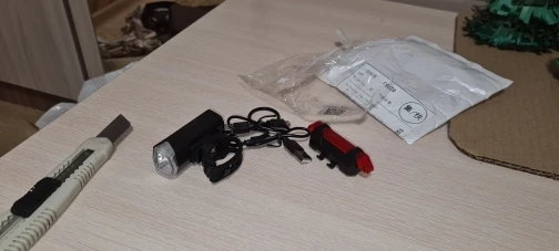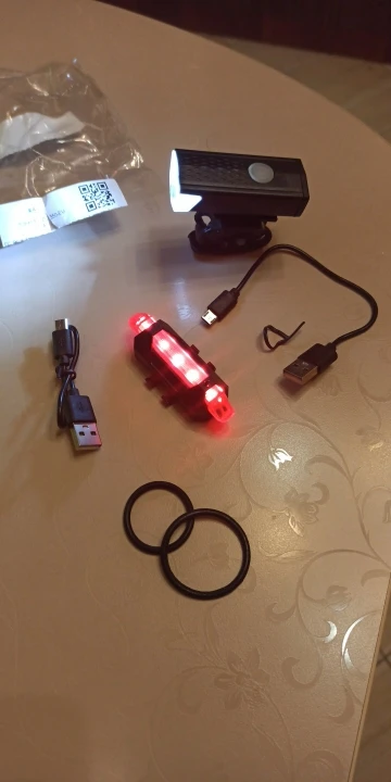 Изначально думал, что размер фонарика будет больше, а он совсем небольшой. Но когда включил, понял что в данном случае размер это не главное. Мощность фонарика отличная. Задний маячек тоже прикольный. В комплекте ещё было два коротеньких USB кабеля и две резинки-держателя. Доставка быстрая. Покупкой очень доволен. Всем рекомендую.