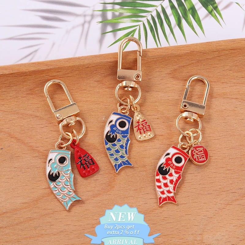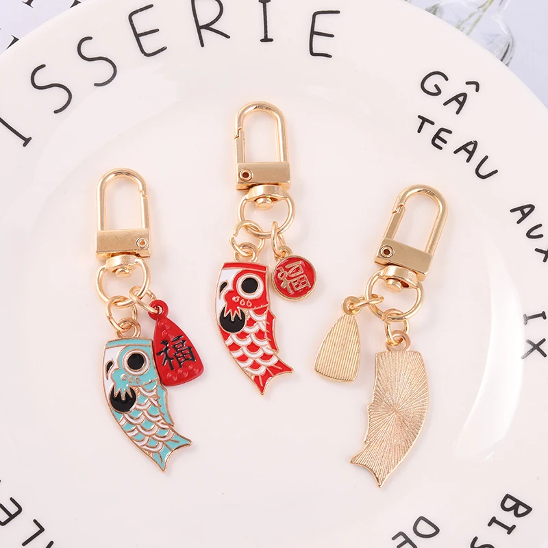 Брелок для ключей на удачу с рыбками кои, 4 цвета, стильная подвеска с благословением, брелок в японском стиле, подвеска в виде милой золотой рыбки