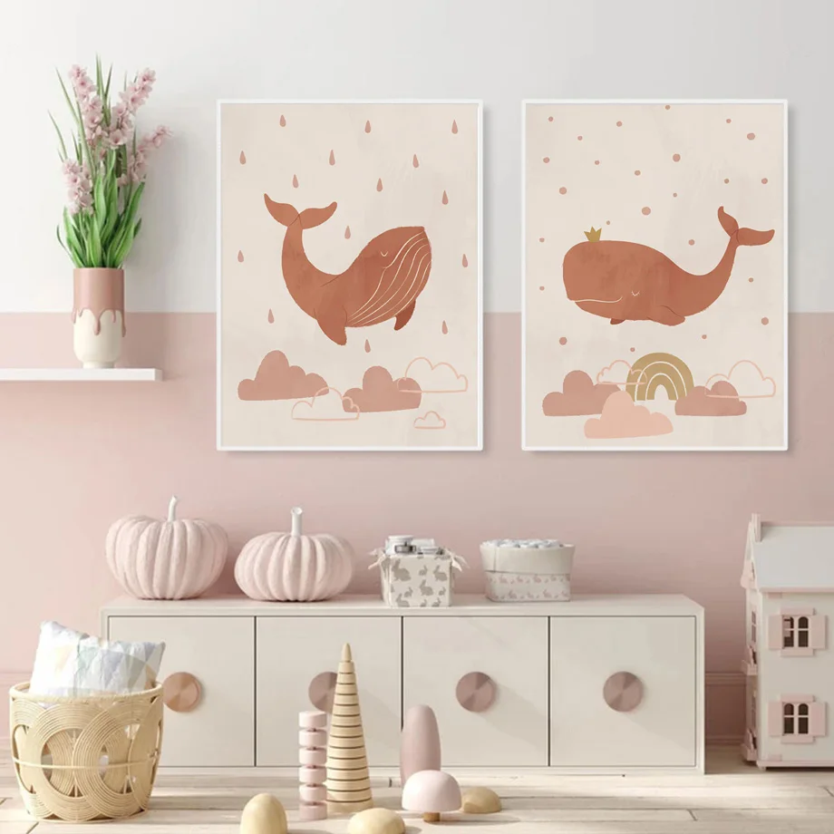 Постеры и принты для детской комнаты с абстрактным львом, китами, с...