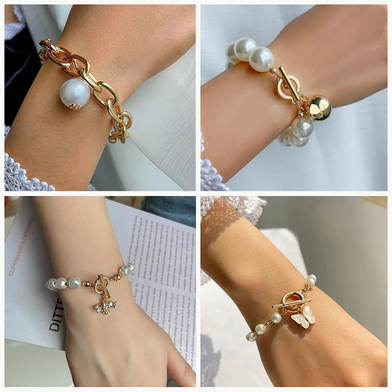 Классический модный браслет с подвеской из искусственного жемчуга д...