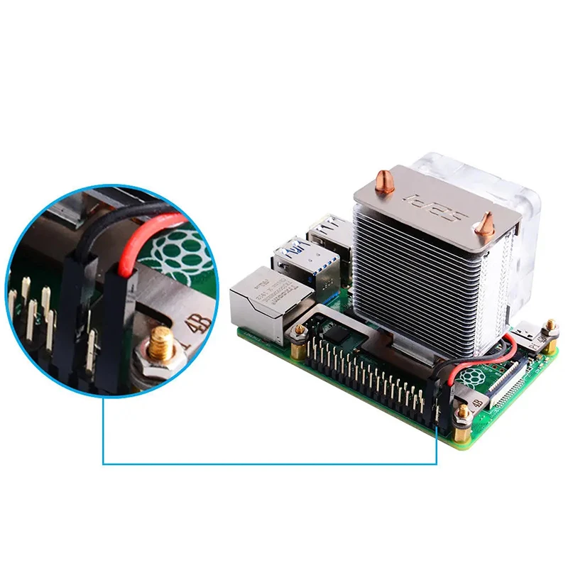 Вентилятор охлаждения ЦП 52Pi ICE-Tower для Raspberry Pi 3B +4B V2.0, медная трубка с 7 светодиодами различных цветов, 5 мм