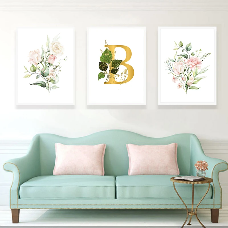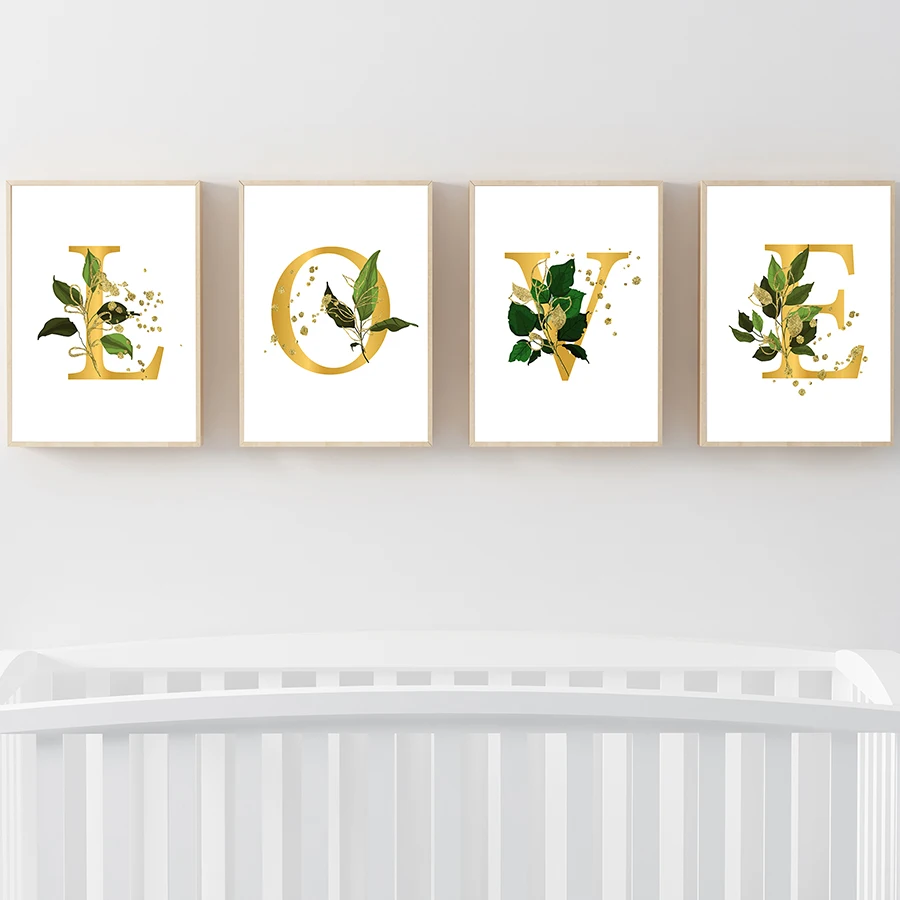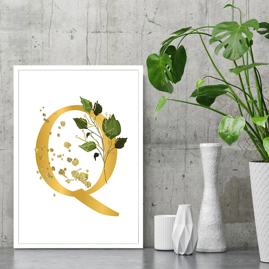Золотое растение Алфавит 26 дюймов Английский Цвет индивидуальное имя вашего ребенка Настенная картина на холсте картина украшение детской комнаты
