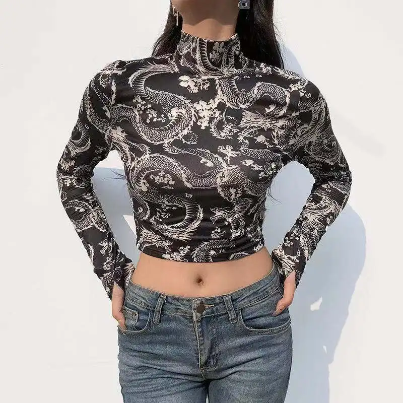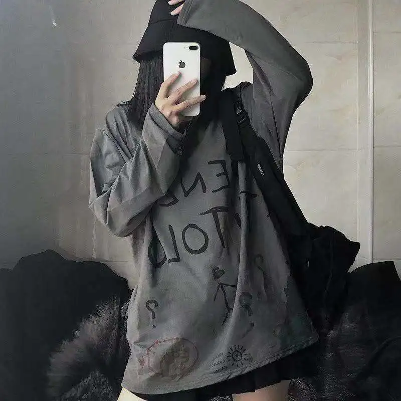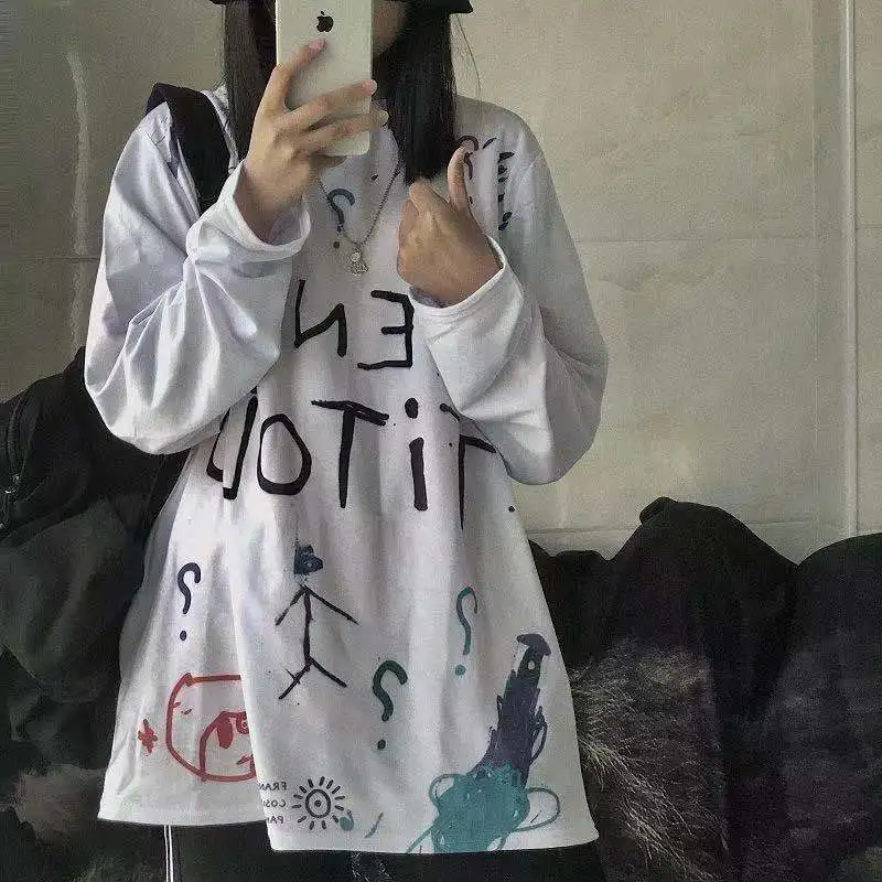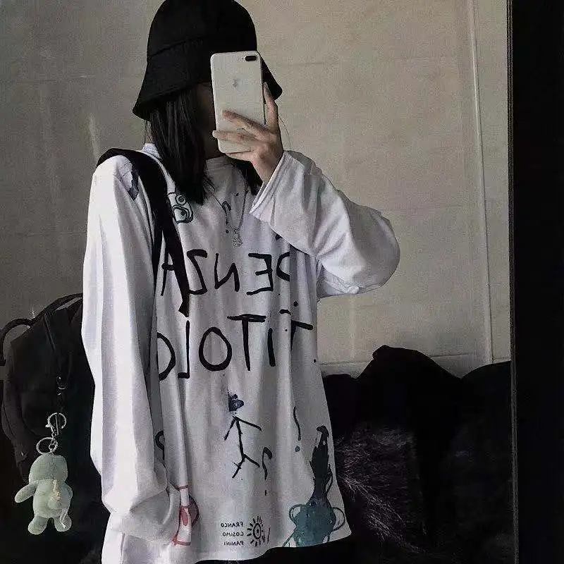 Топ с длинным рукавом, женская футболка оверсайз 2021, женская рубашка, футболка с графическим рисунком, Женская винтажная одежда с рисунком