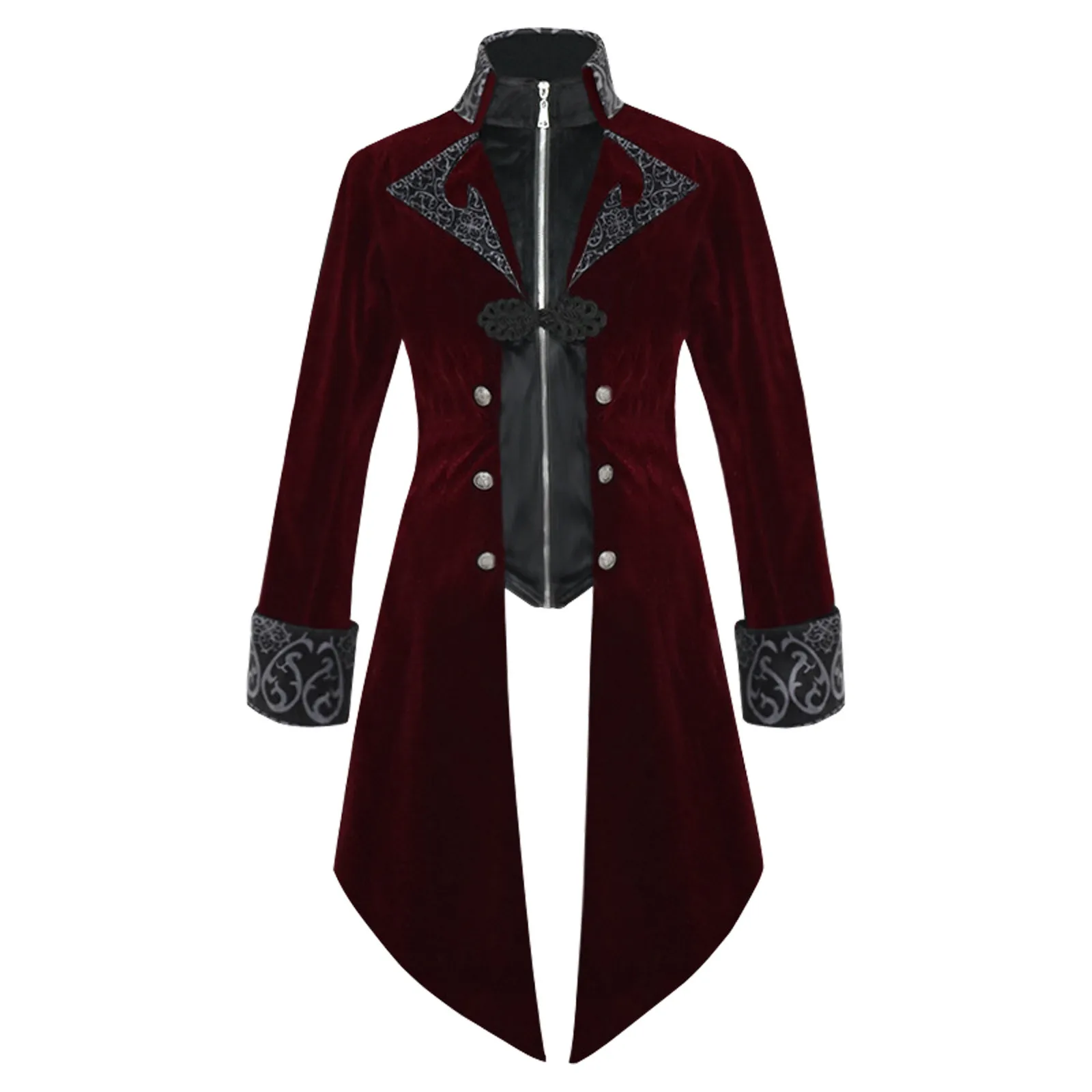Мужской Готический пиджак, винтажный костюм в средневековом викторианском стиле, смокинг, замшевый Тренч, длинное пальто на молнии с длинным рукавом, униформа для мужчин #