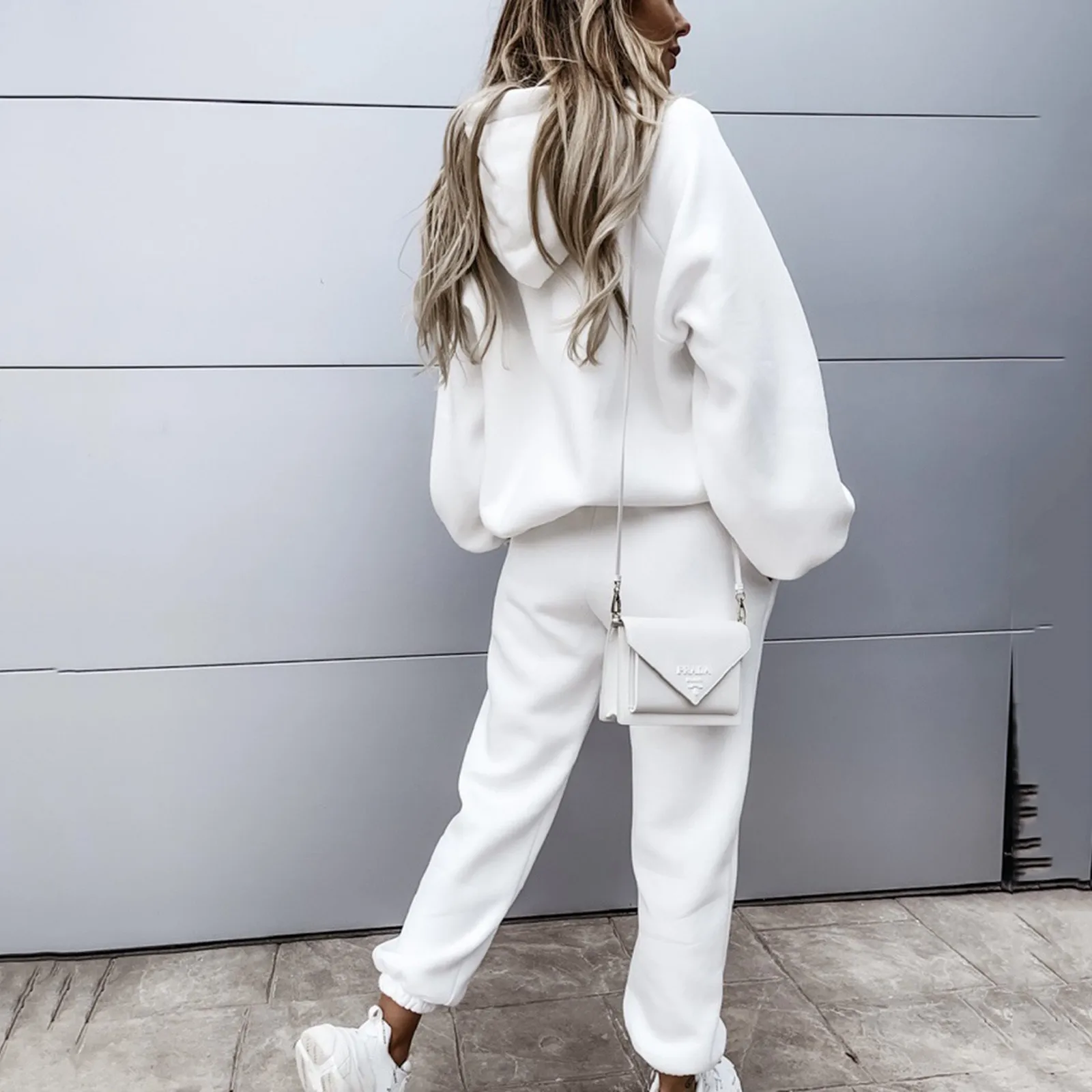 Спортивный костюм женский из 2 предметов, толстовка с капюшоном и длинные брюки, повседневный пуловер с длинным рукавом, укороченный топ, костюм для отдыха #40