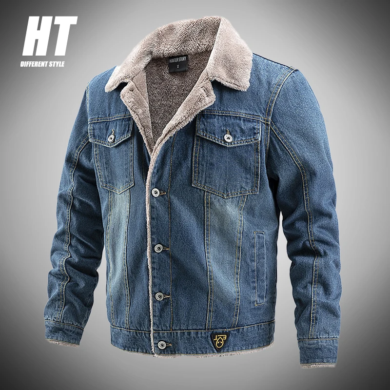 Мужские зимние джинсовые куртки, верхняя одежда, теплые джинсовые п...