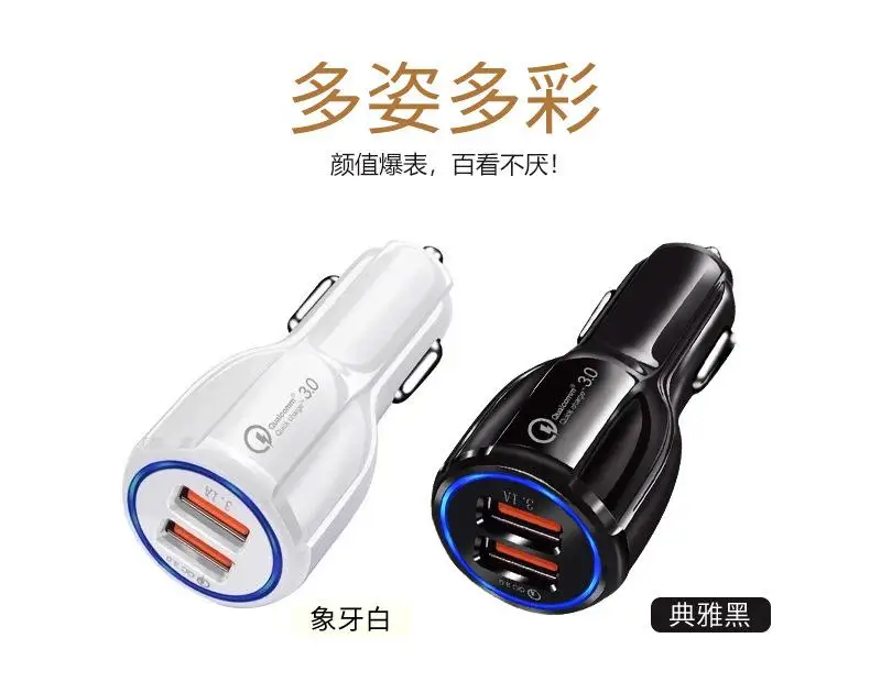 Автомобильное зарядное устройство 5 В3 А 9 В2 а 12 В1,5 А с двумя usb-портами, 2 порта, адаптер QC 3,0, зарядное устройство, USB адаптер питания, черныйбелый для всех смартфонов