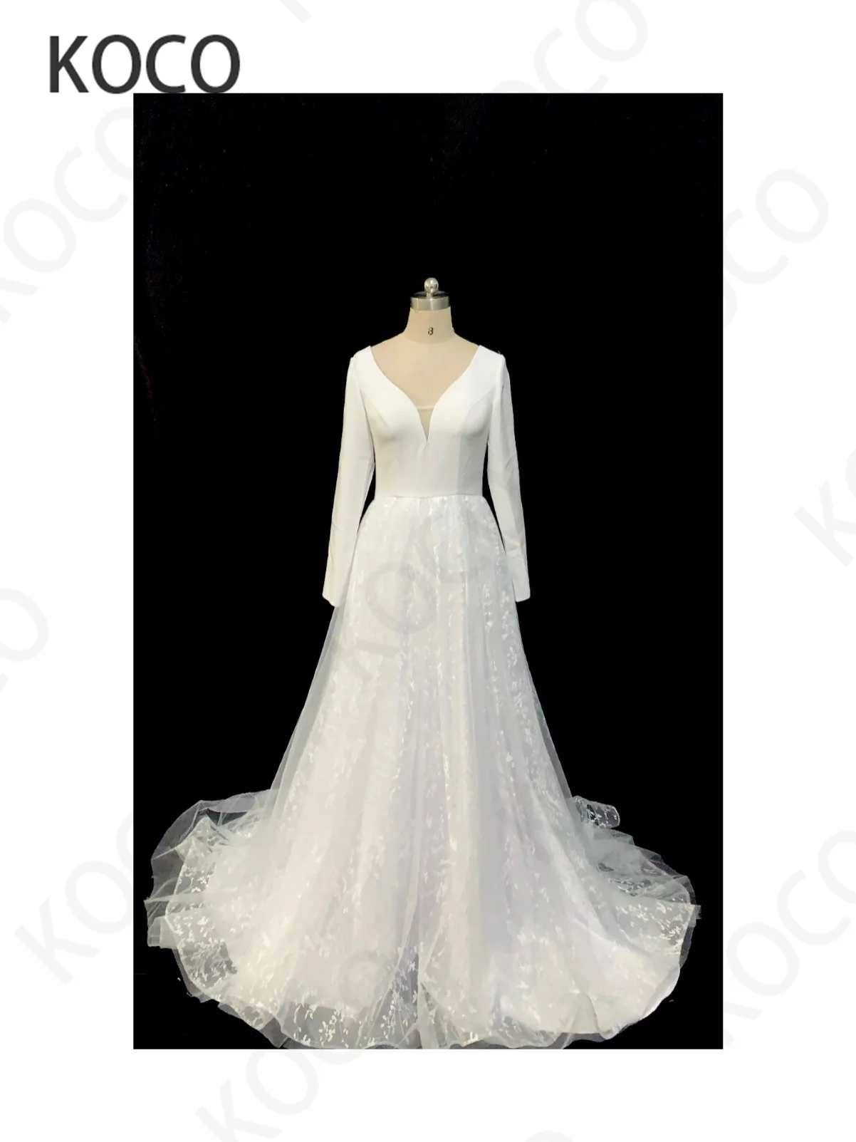Простое темпераментное атласное свадебное платье MACDUGAL с V-образным вырезом и длинными рукавами, очаровательное вечернее платье в стиле бохо, простое модное