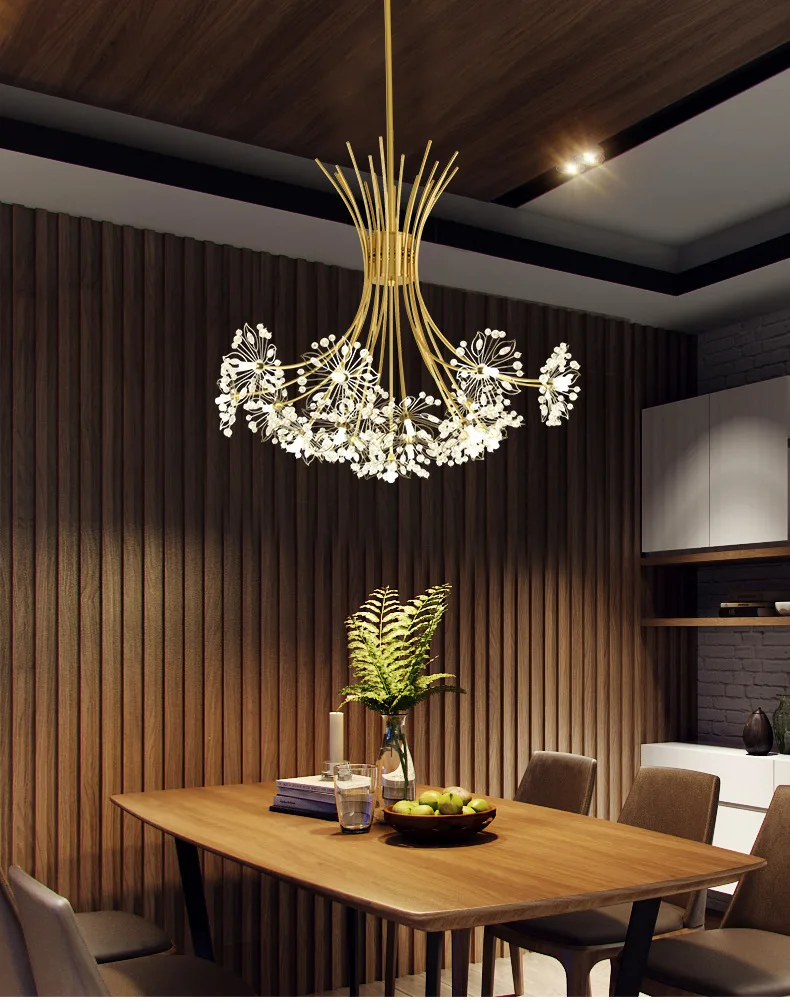 Хрустальная люстра в виде одуванчика, светодиодный декоративный светильник в скандинавском стиле пост-модерн для гостиной, спальни, кабинета, ресторана