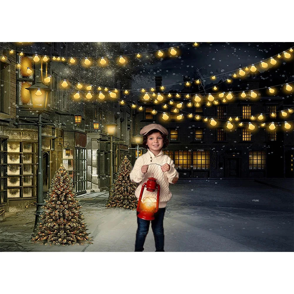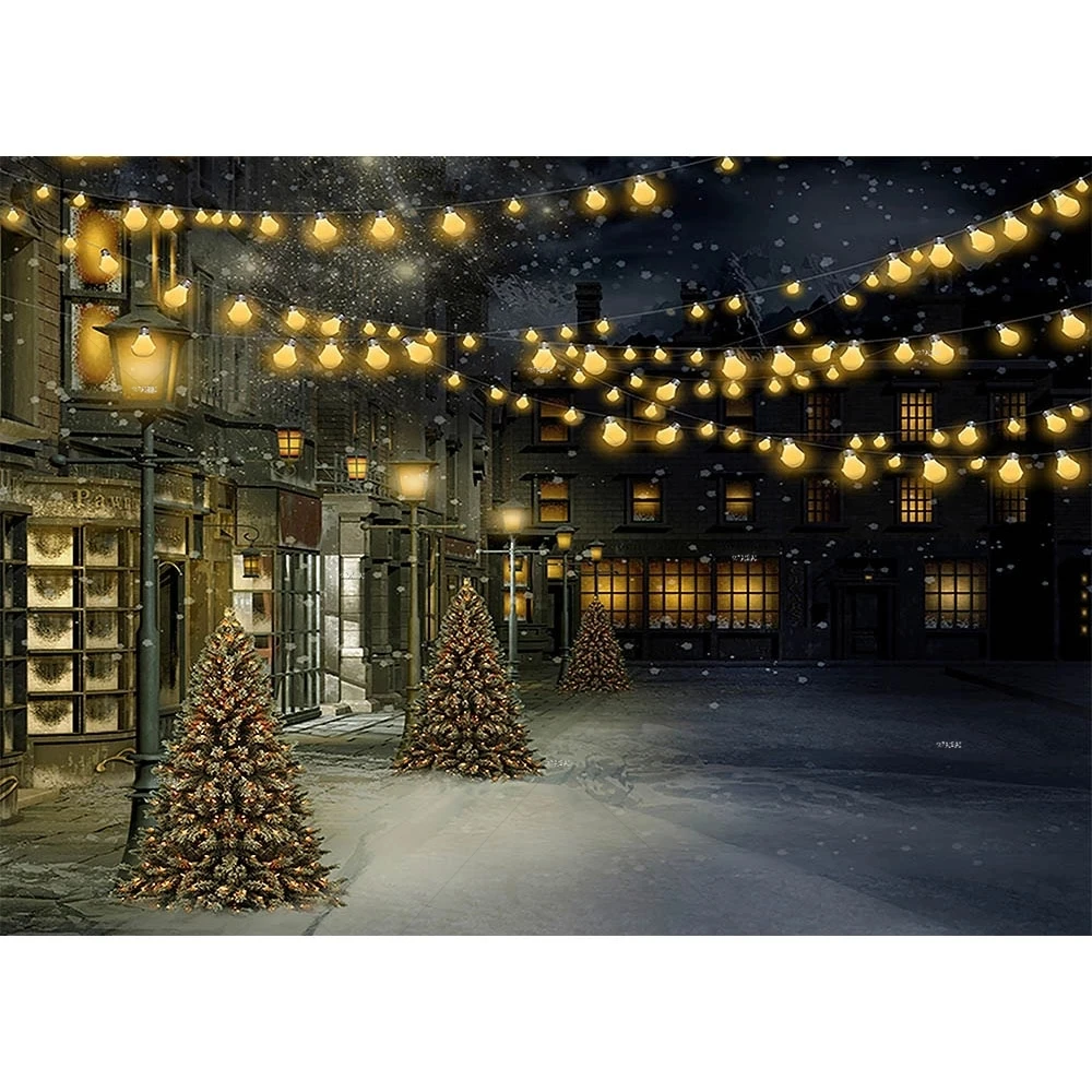 Рождественский уличный фон для фотосъемки новорожденных детей портретный магазин уличная лампа Фотофон сосновая елка блестящие огни