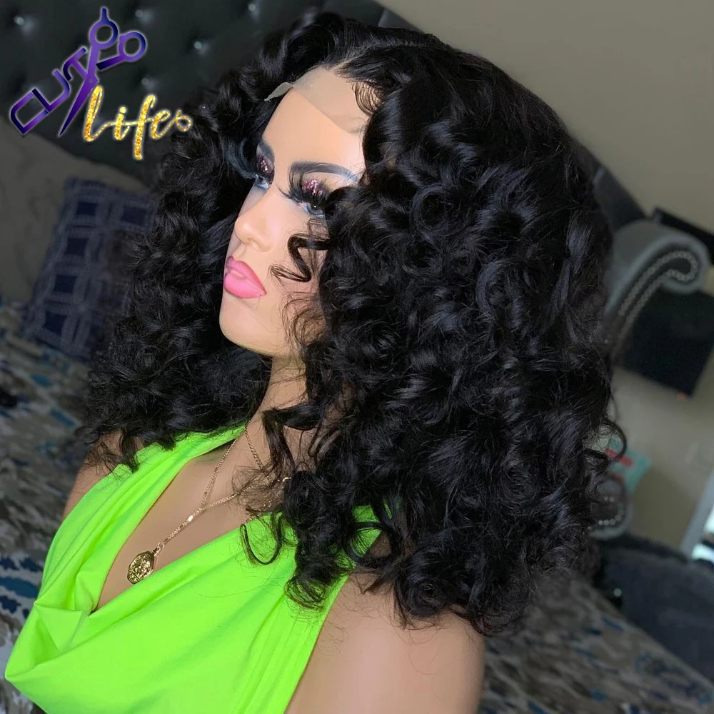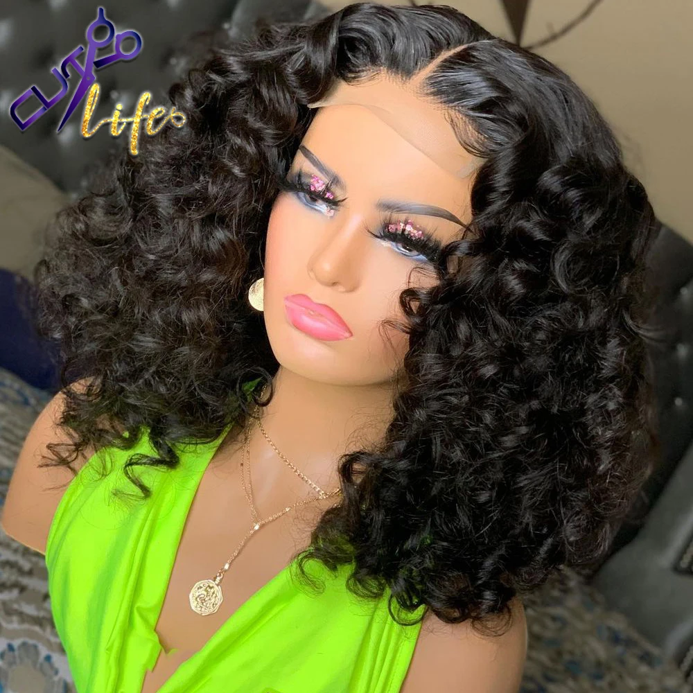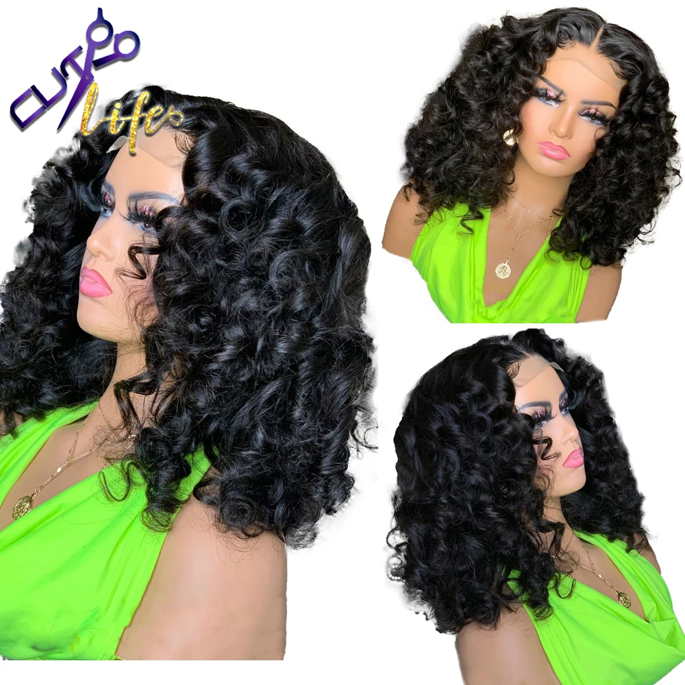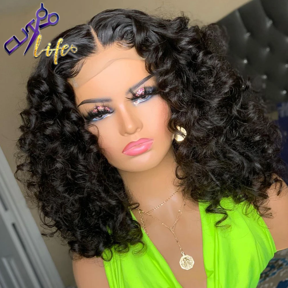 Короткие женские вьющиеся волосы, парик, 13X 4, парик из человеческих волос, бразильские волосы для предварительно выщипанных париков Remy для черных женщин
