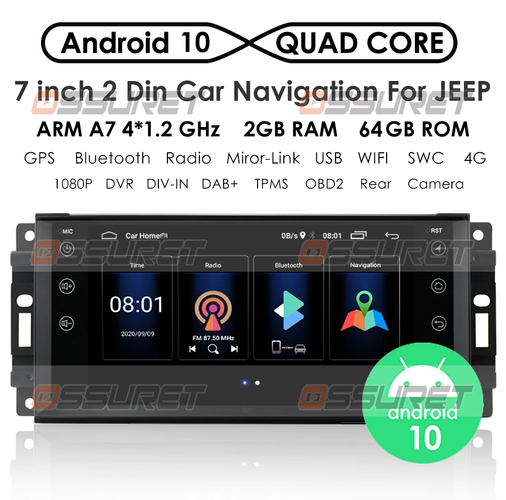 4 ядра 2 ГБ + 64 Гб 2din Android 10 Автомобильный GPS для Jeep Cher...