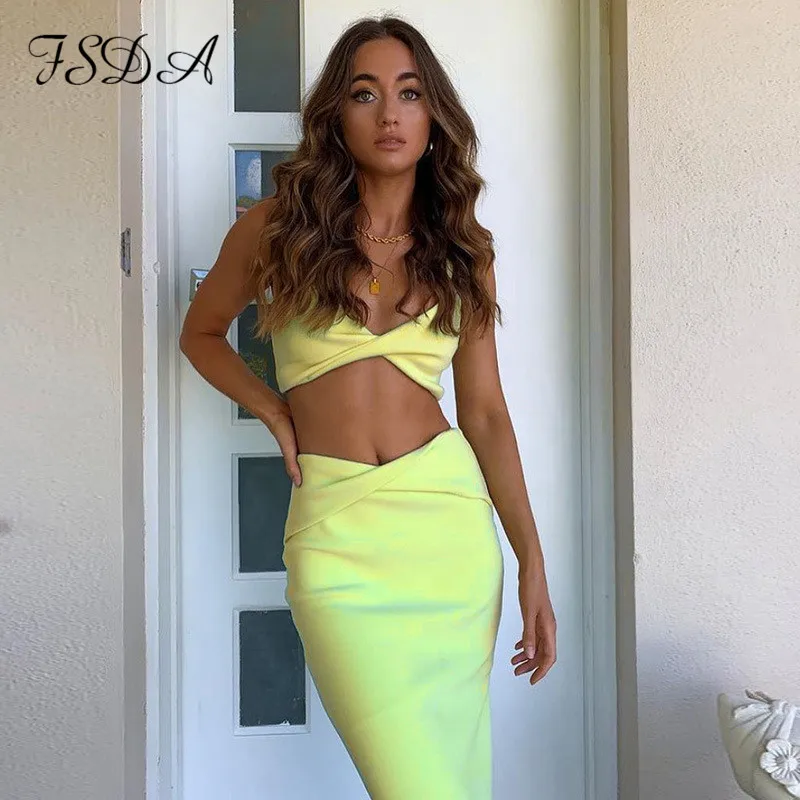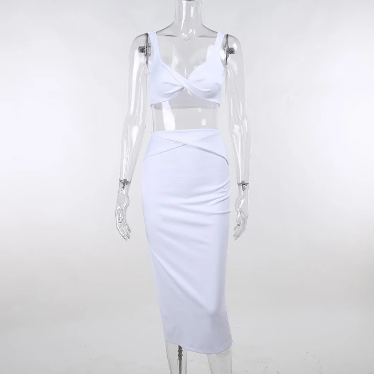 Комплект из двух предметов: кроп-топ без рукавов и юбка миди с V-образным вырезом