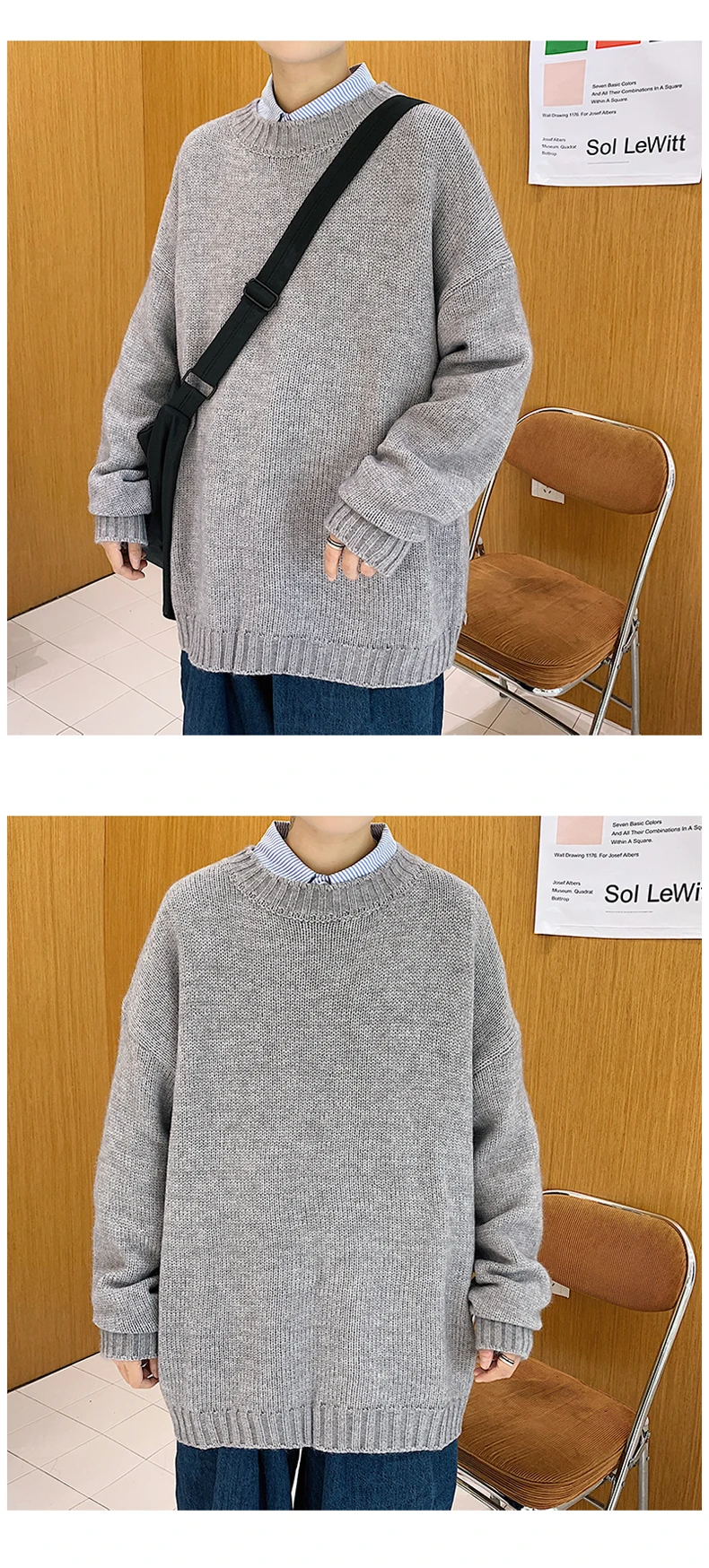 Разборный осенне-зимний свитер с круглым вырезом, мужской свободный...