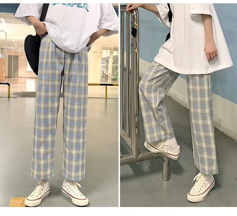 Женские брюки в клетку, летние аниме брюки с высокой талией, новинк...