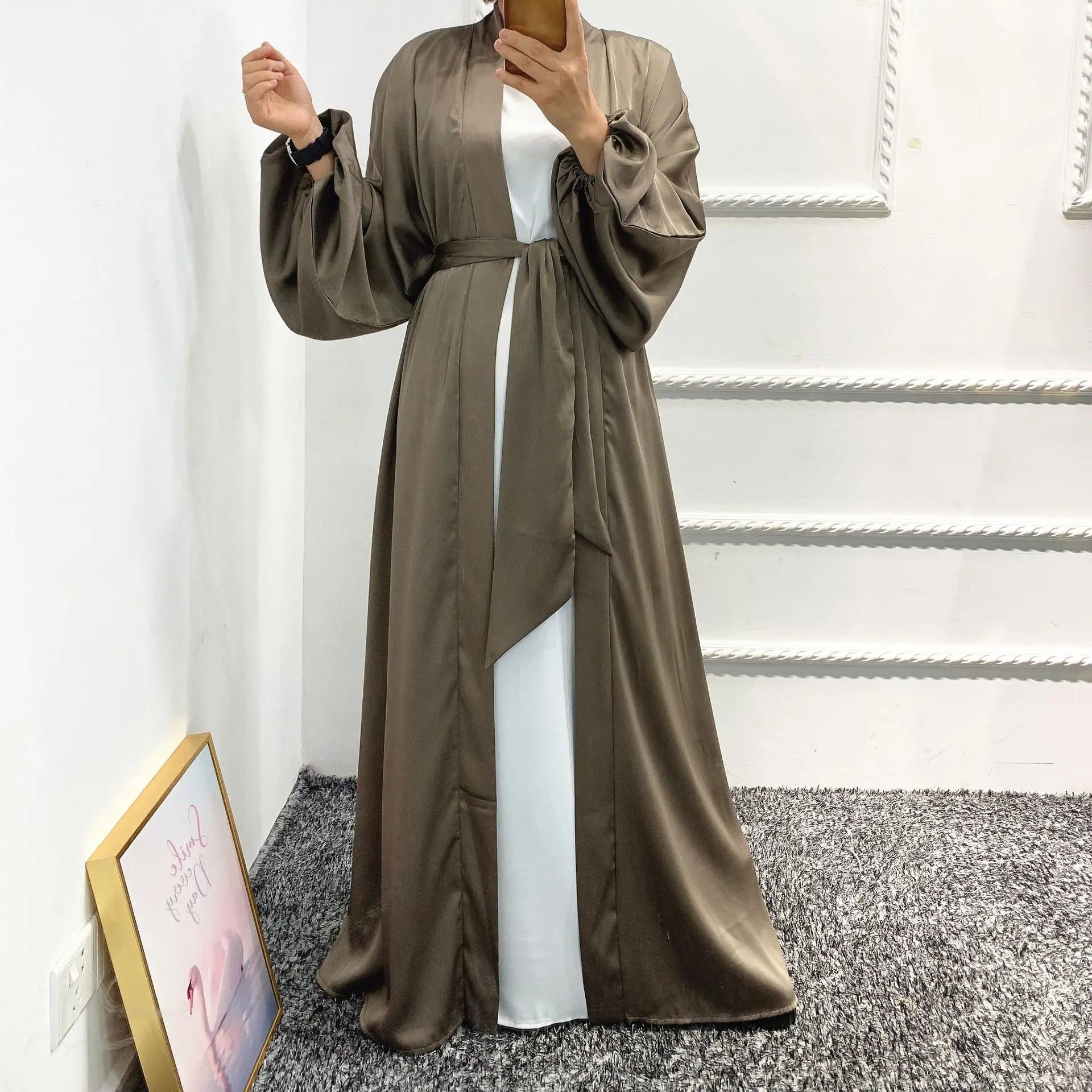 Женское атласное кимоно Abaya Dubai, модное мусульманское платье-хиджаб с рукавами-воздушными шарами, одежда в мусульманском стиле, одежда для индейки, кардиган, кафтан