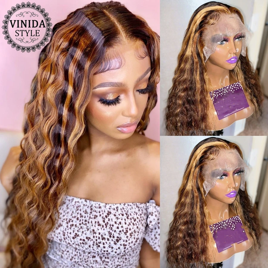 Парик VINIDA из натуральных бразильских волос на сетке спереди 13x4, предварительно выщипанные вьющиеся волосы, подчеркивающие фигуру, 150, плотность 180, 8-24 дюймов, для женщин