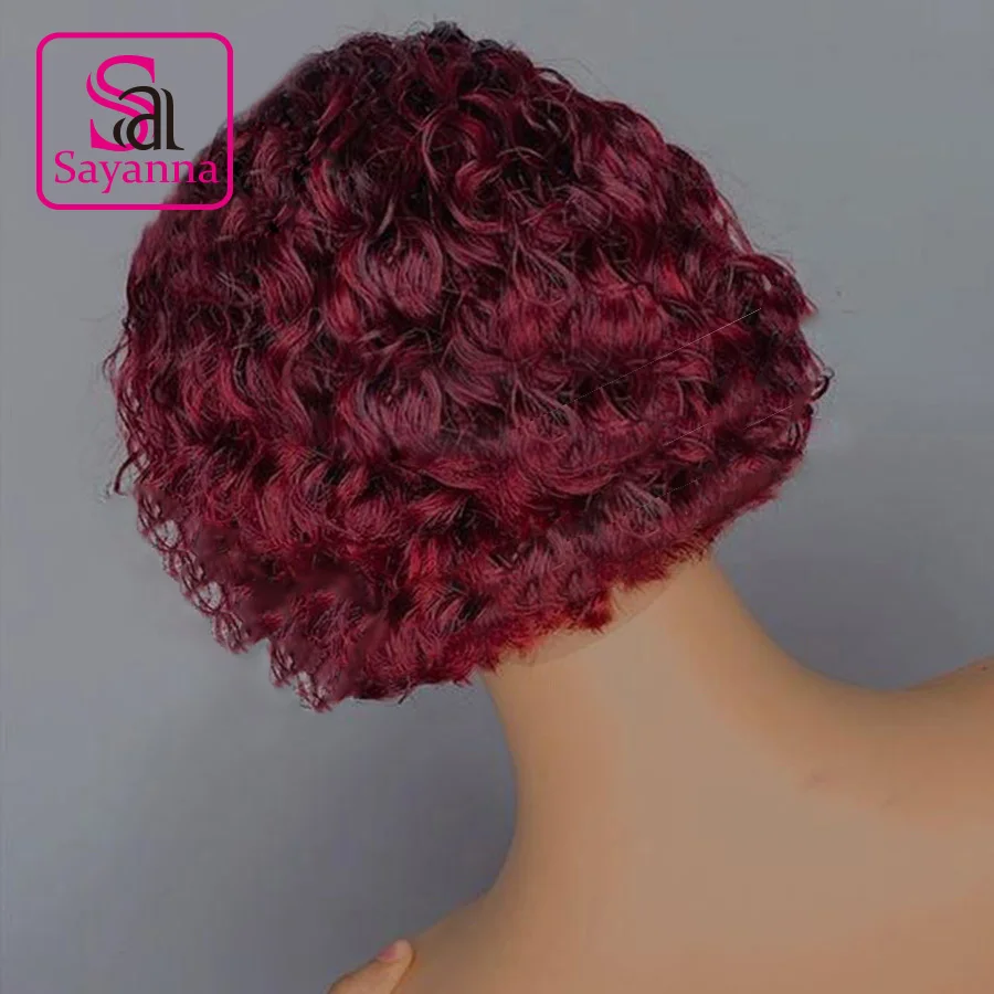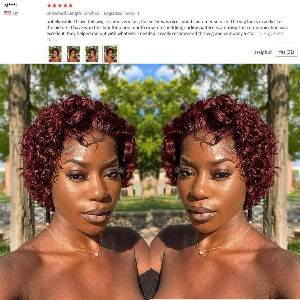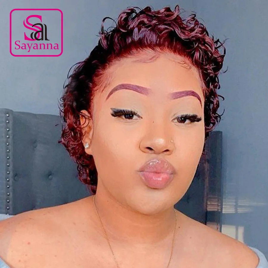 Парик Pixie Cut из человеческих волос, короткий кудрявый предварительно выщипанный парик, бордовый короткий парик Bob Remy, парик из натуральных волос на фронте, бразильский парик для женщин
