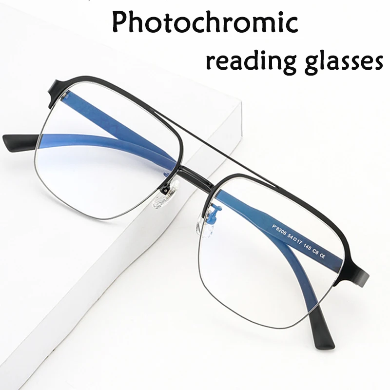 Очки для чтения с фотохромными линзами для мужчин и женщин, большие линзы в стиле ретро, для пресбиопии, с трансформирующим цвет солнцем, для улицы, из титанового сплава