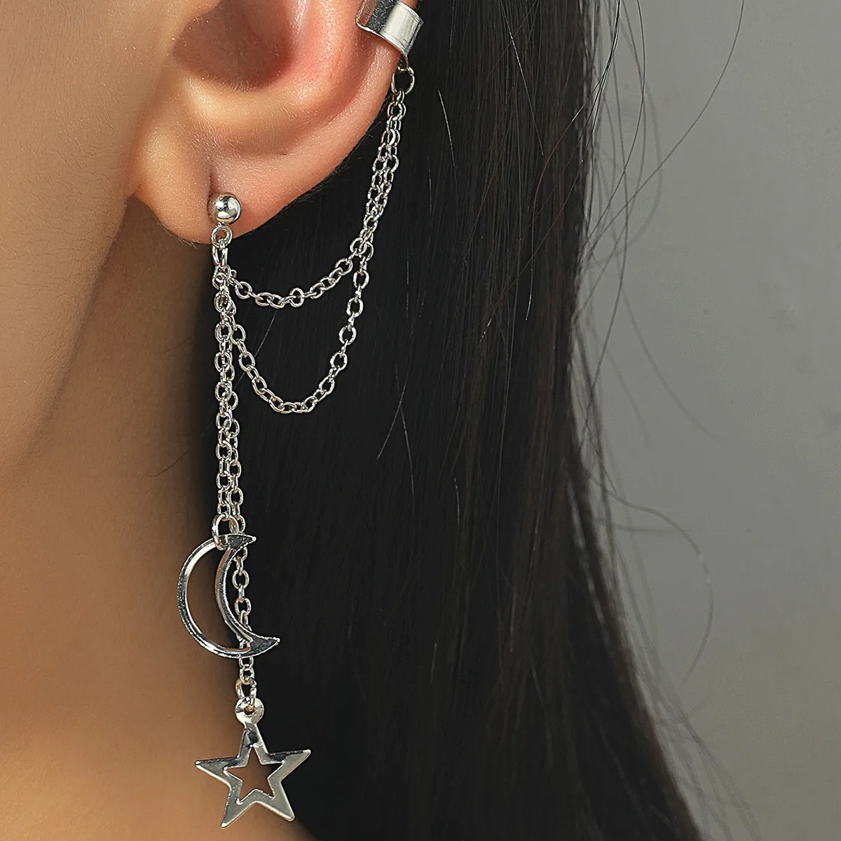 1 шт. подвеска Звезда Луна очаровательные Висячие серьги длинная цепочка кисточка ушные клипсы геометрические золотые серебряные цвета для женщин и девушек