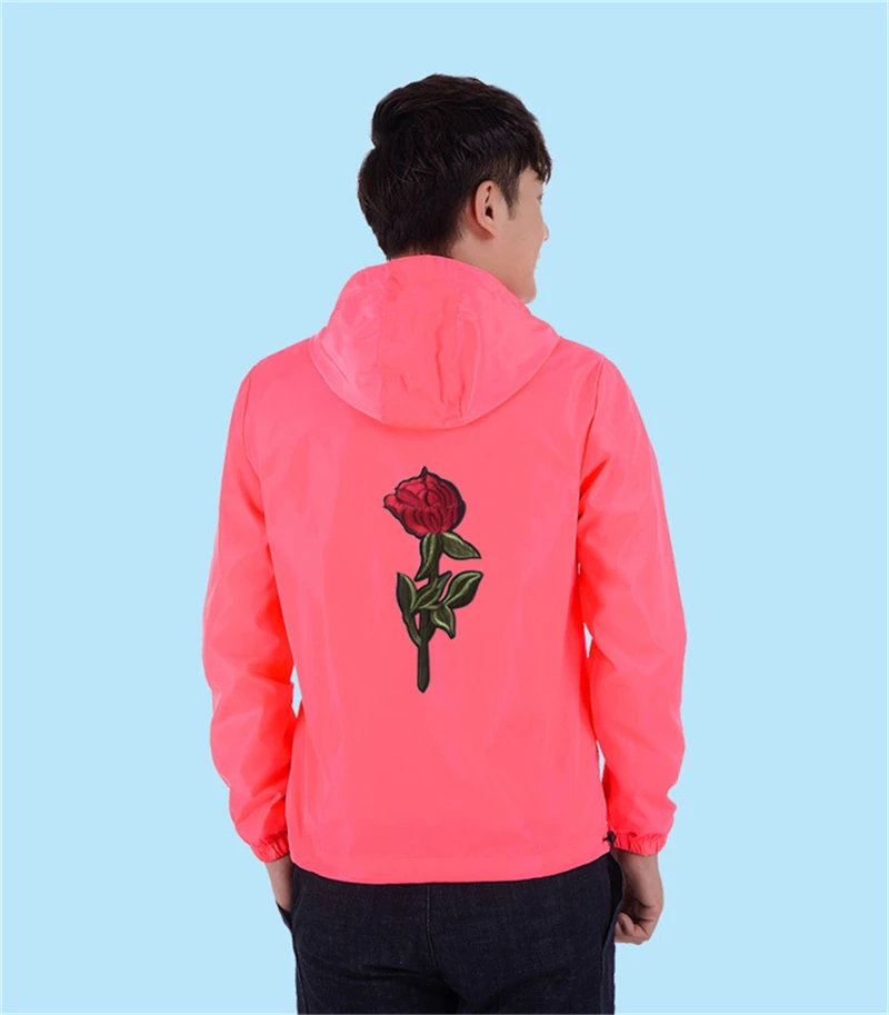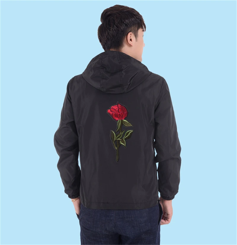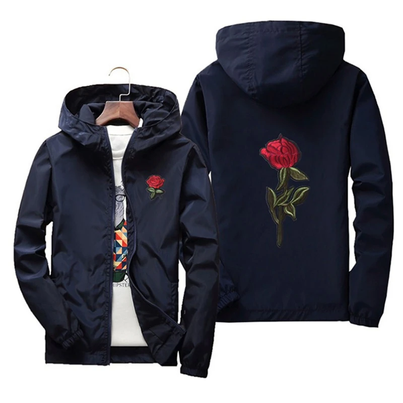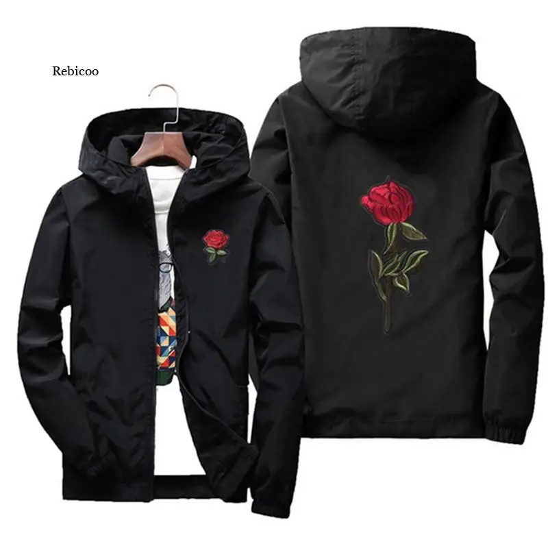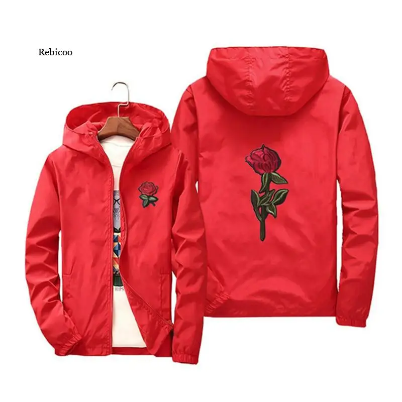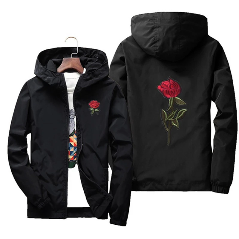 Мужские и женские куртки с вышивкой розы, тонкая уличная одежда, куртка, пальто в стиле хип-хоп, Повседневная Осенняя ветрозащитная искусственная кожа 7Xl