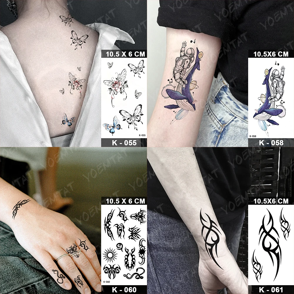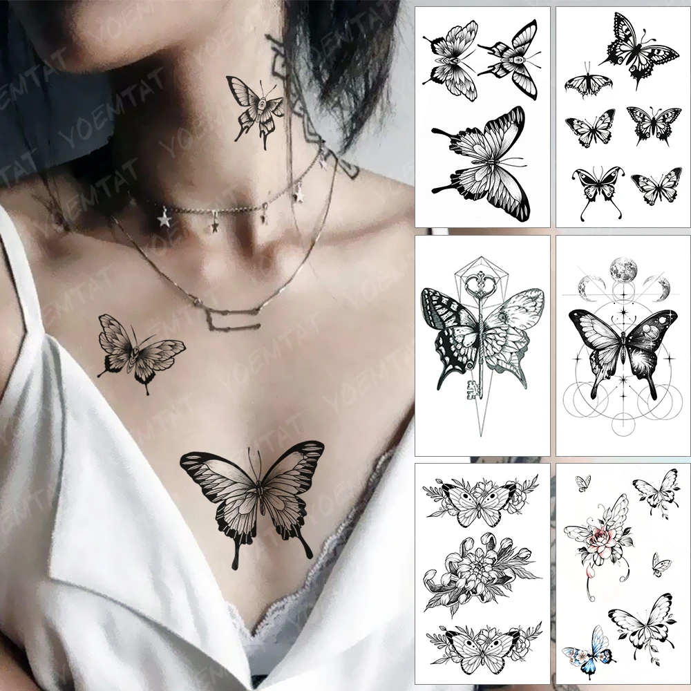 Водостойкая Временная тату-наклейка, черные крылья бабочки, новый стиль 2021, тату для груди, шеи, женщин, мужчин, детей, искусство, искусственные татуировки