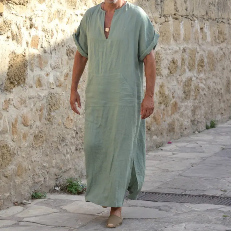 Мужской халат, однотонный хлопковый кафтан, мусульманский, арабский...