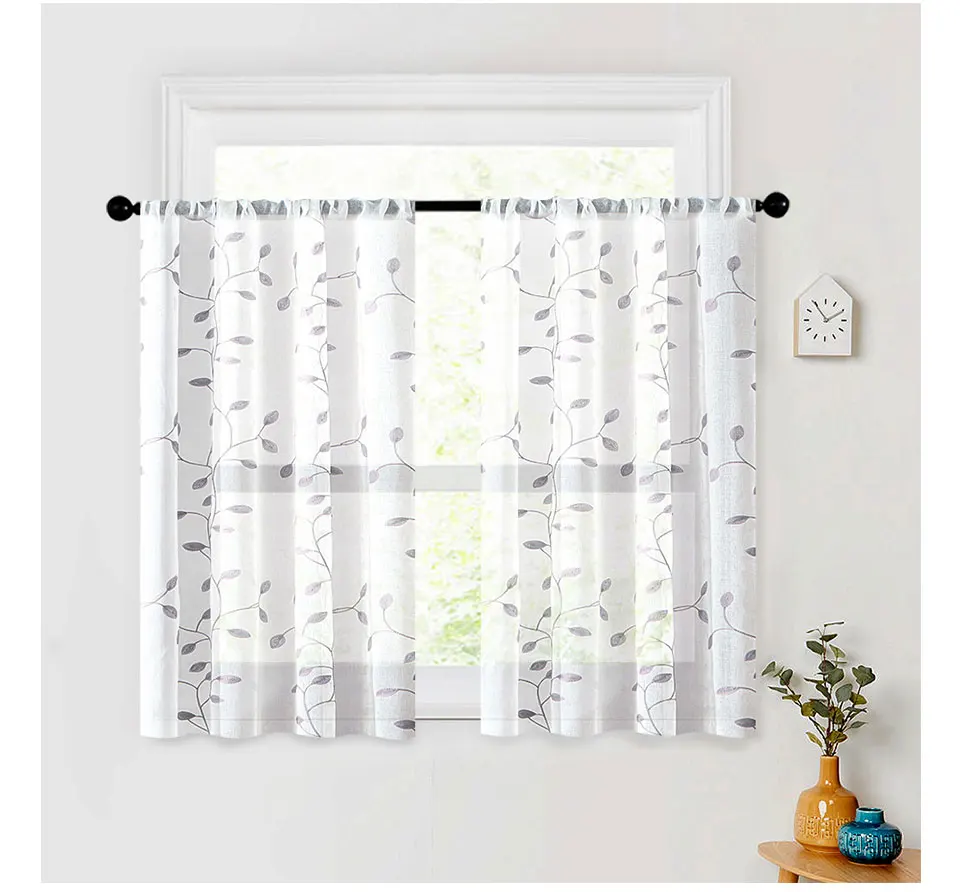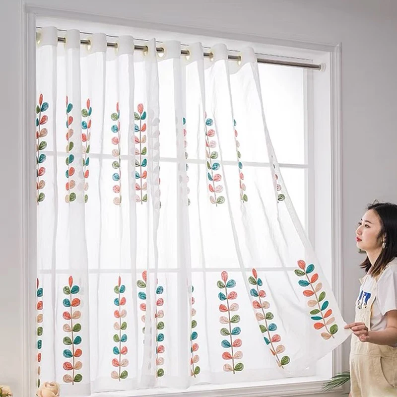 Занавеска из тюля для гостиной, спальни, кухни, с вышивкой листьев