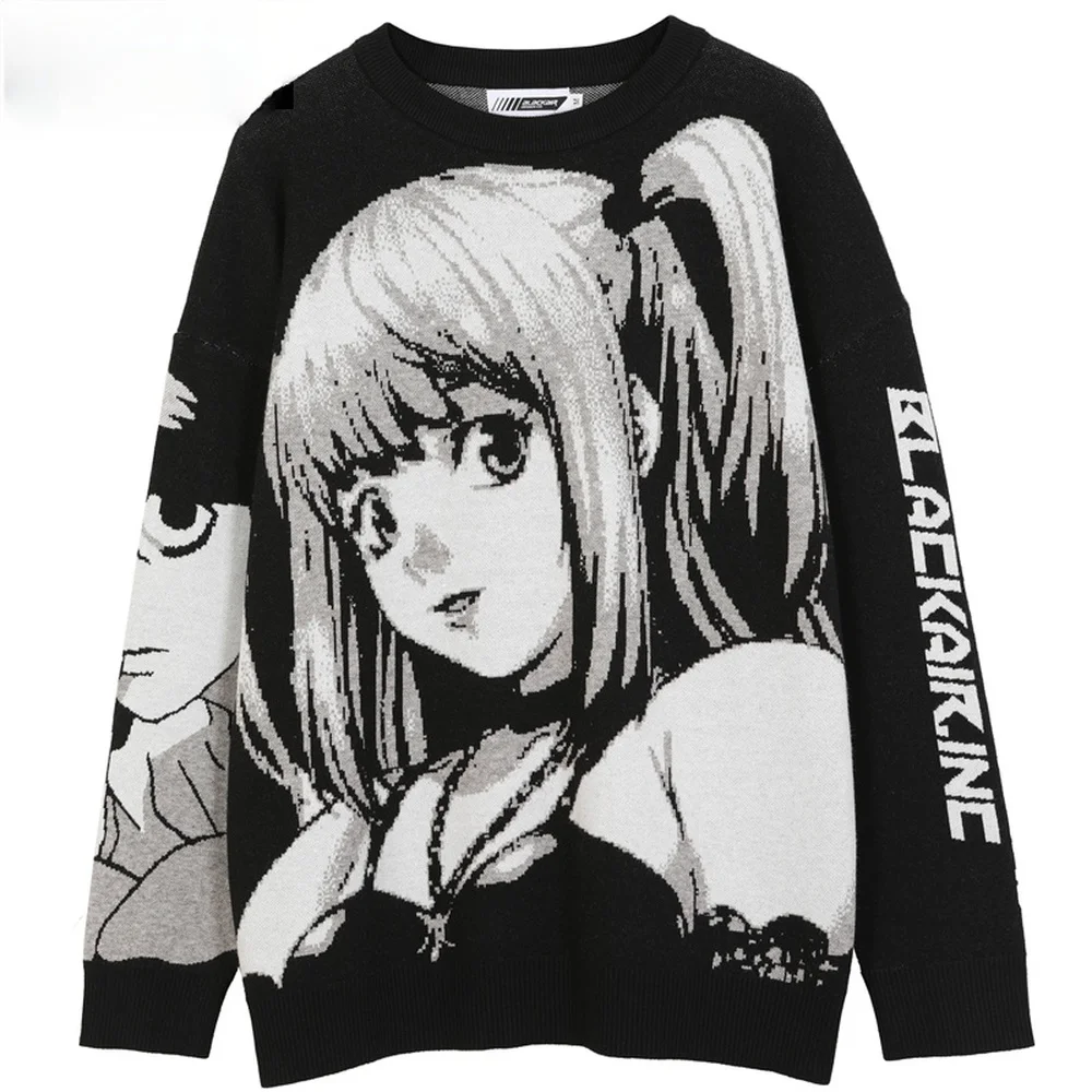Трикотажный свитер в стиле аниме для девочек, мужские свитера в сти...