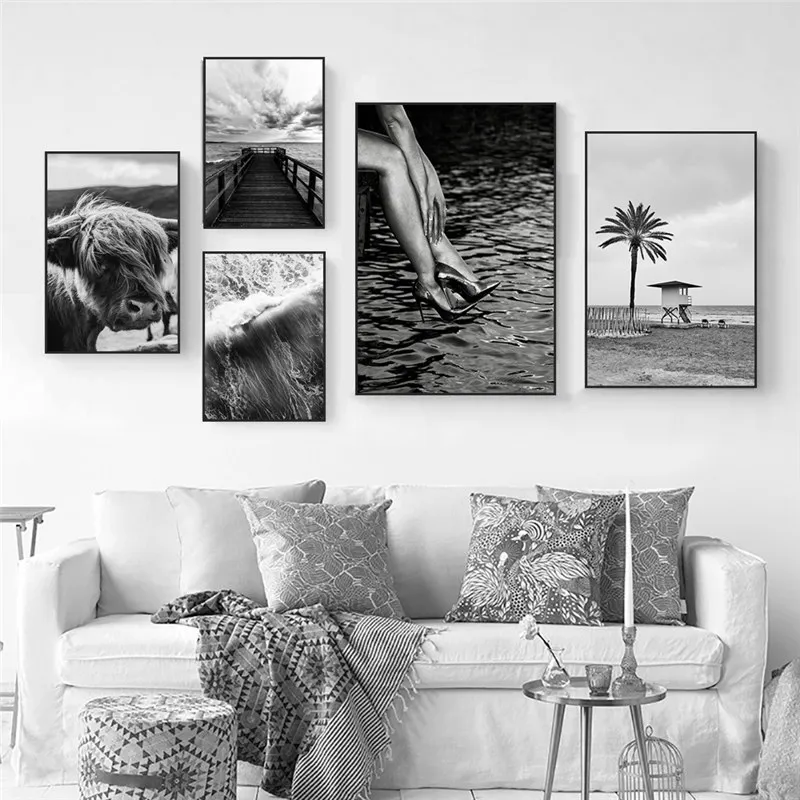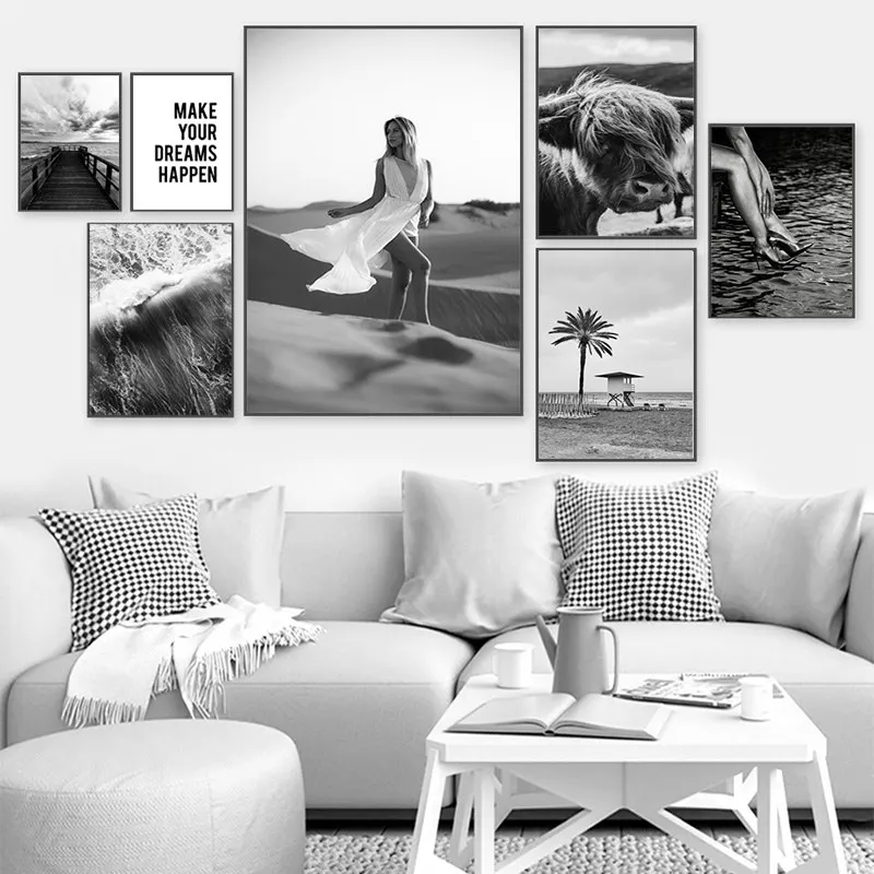 Скандинавский настенный постер HD0113 с изображением коровы, черного и белого неба
