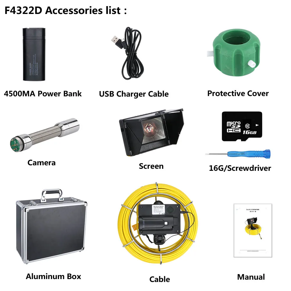 Видеокамера для осмотра канализационных труб 20 м 30 м 50 м, 16 ГБ ...