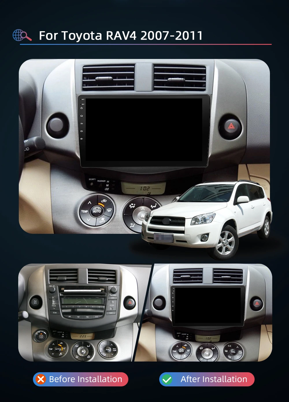 Примечание: пожалуйста, свяжитесь с нами, чтобы предоставить модель и год вашего автомобиля, и предоставьте фотографию вашего оригинального автомобильного радио, чтобы мы могли подтвердить рамку, если вы не можете найти плеер, подходящий для вашего автомобиля, вы можете связаться с нами, и мы порекомендуем вам правильный плеер!