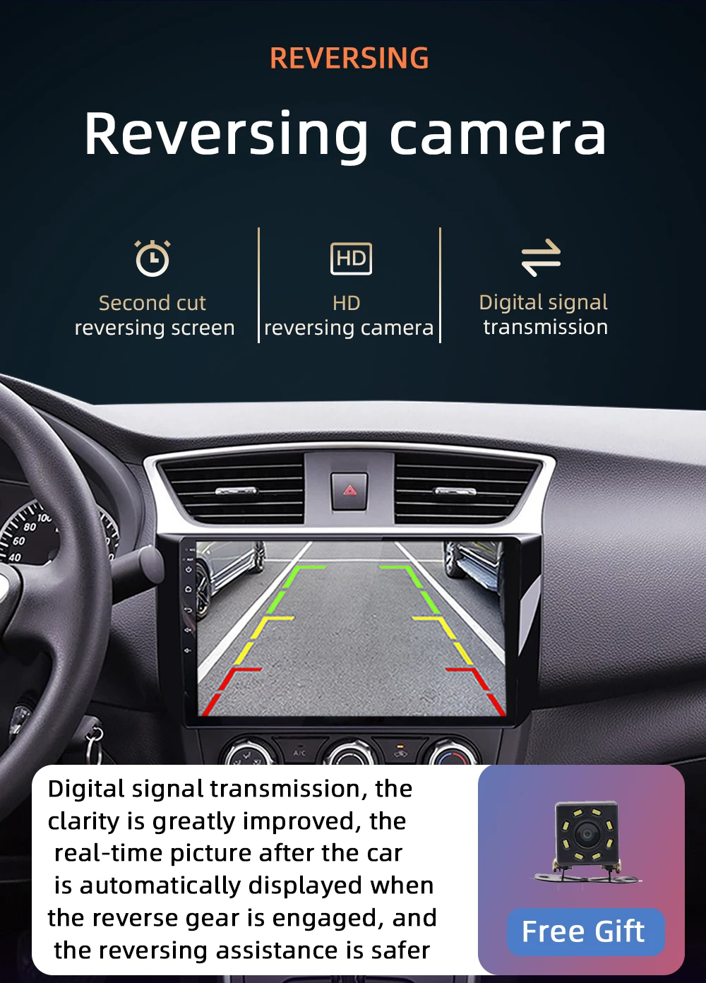 8. Функция заднего хода: Поддержка входа камеры заднего хода, Реверсивный более безопасный и удобный