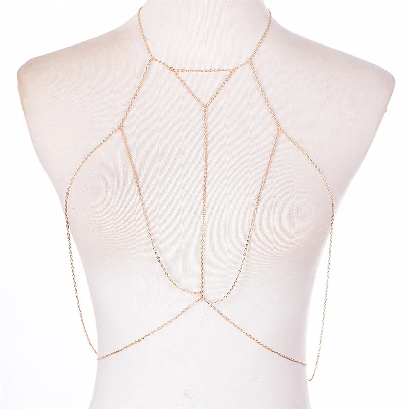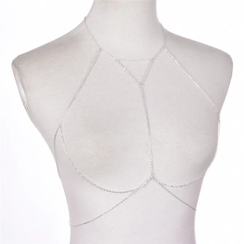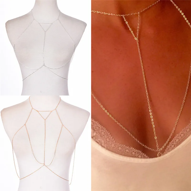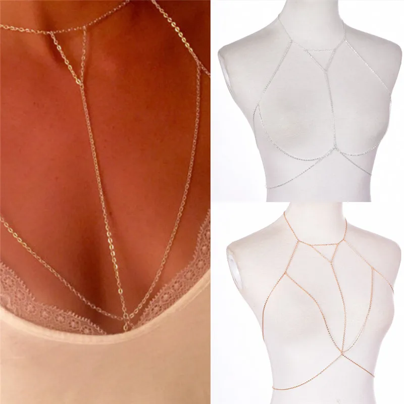 Модный бюстгальтер с цепочкой золотого и серебряного цветов, многослойная Сексуальная Пляжная портупея для бикини, V ожерелья, Женская цепочка для тела, ювелирное изделие, подарок