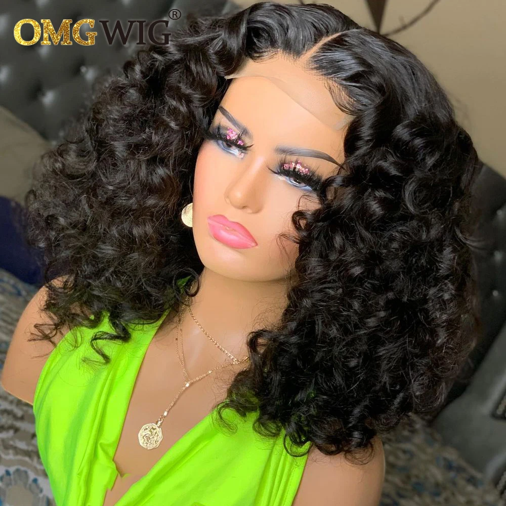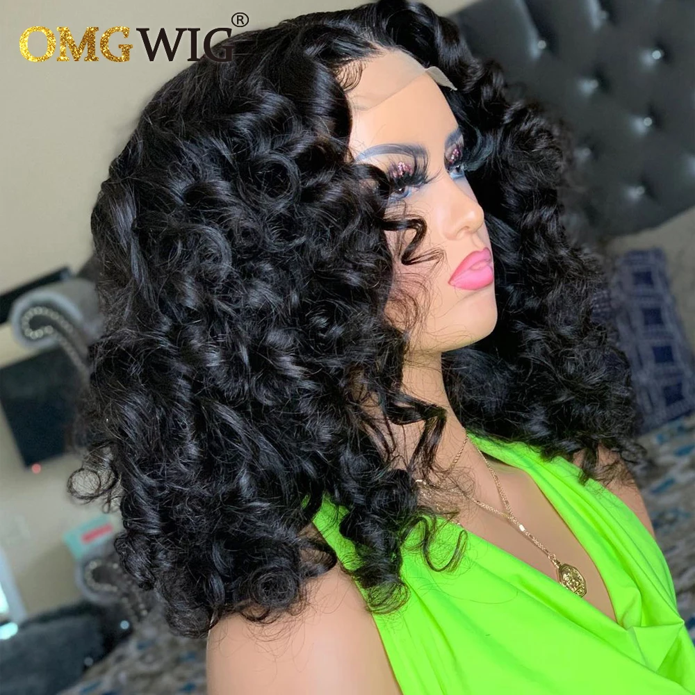Свободный вьющийся Швейцарский парик HD на сетке спереди, 4x4, бразильские человеческие волосы Remy, парики для черных женщин, парик с большим изгибом, предварительно выщипанная линия волос