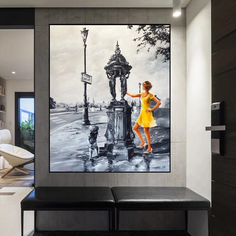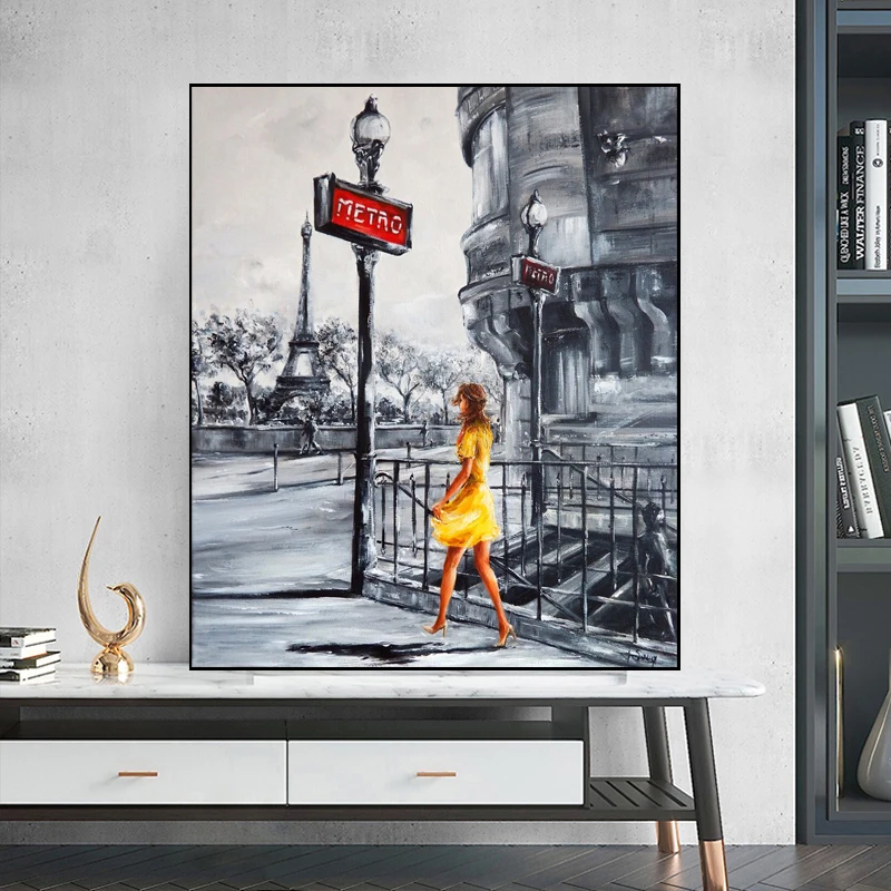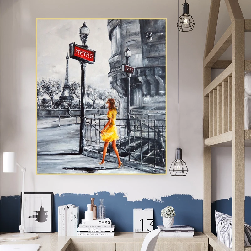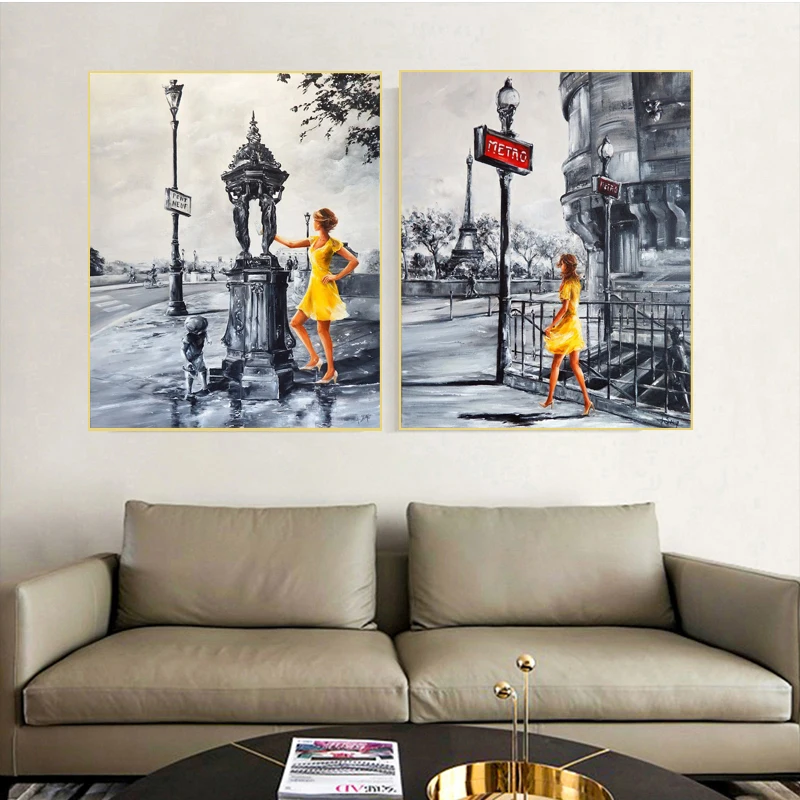 Картина маслом на холсте, эскиз пейзажа, желтая женщина, модный плакат, настенное искусство, декоративная картина для гостиной, украшение для дома