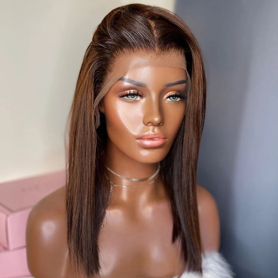 26 дюймов коричневый цвет короткий боб прямой синтетический кружевной фронтальный парик 13x4 кружевные парики для женщин с детскими волосами фотоемкость 180% Плотность