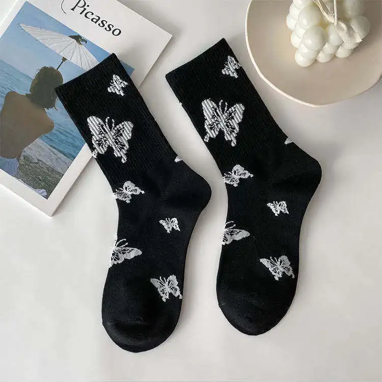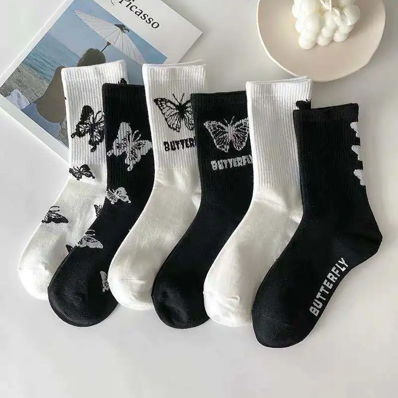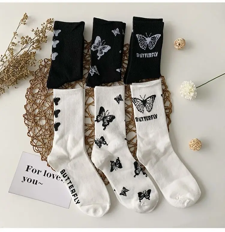 Милые носки средней длины с принтом бабочки женские носки спортивны...