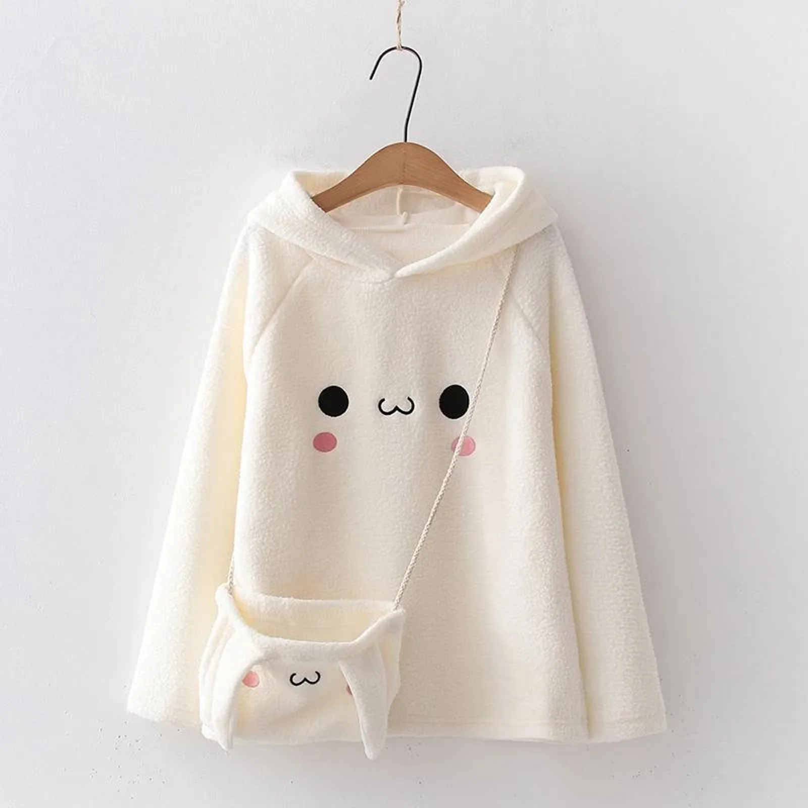 Милые толстовки с кроличьими ушками для женщин, Теплый Женский свит...