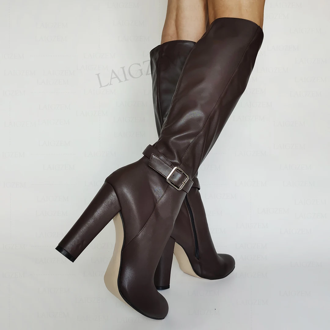 LAIGZEM/женские сапоги до колена; Сапоги на толстом каблуке на молнии; Женская обувь ручной работы; Zapatos Mujer; Женская обувь; Большие размеры 40, 44, 45, 52