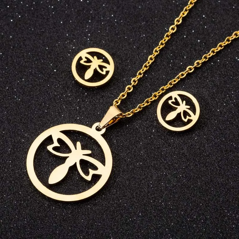 Ожерелье женское, из нержавеющей стали, с подвеской в виде цветка, бабочки, золотого цвета