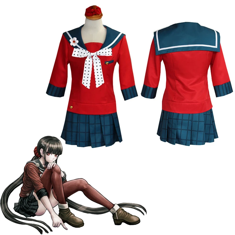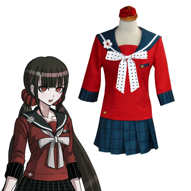 Косплей-костюмы из аниме данганронпа харукава Маки для девочек, костюмы на Хэллоуин, карнавал вечерние Матросская униформа, костюм с короткой юбкой, комплект с красными чулками