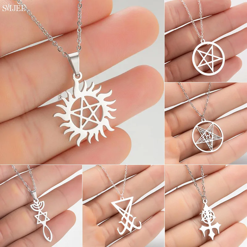 Классические Подвески со звездой и пентаграммой, ожерелья из нержавеющей стали, сверхнатуральные, для женщин и мужчин, модная булавка сатана, бижутерия, подарок другу