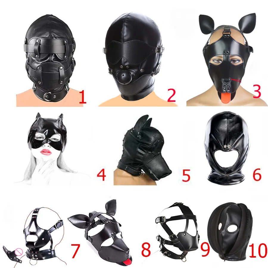 Кожаная маска с капюшоном для бондажа, мягкий шарф для раба, фаллоимитатор/кляп с завязанными глазами, фетиш бдсм, секс-игрушки для пары, аксессуары для косплея