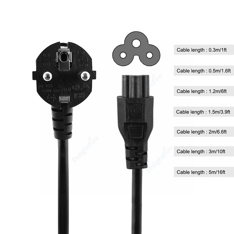 Кабель питания для ноутбука 0,30,51,21,5235 м, штекер Schuko C5, шнур питания для HP, Dell, Lenovo, Asus, блок питания для ноутбука, LG, телевизора, монитора