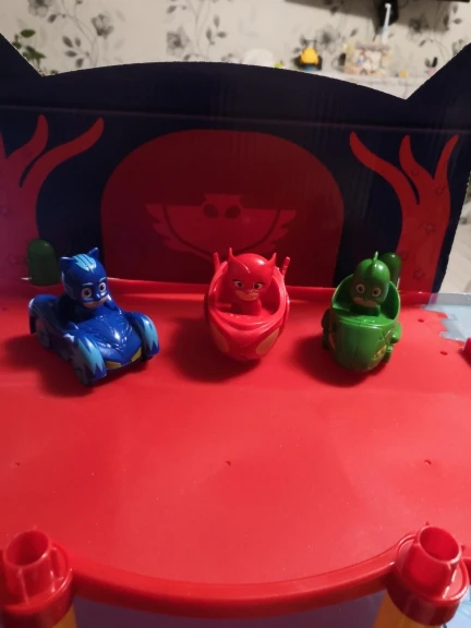 Хороший набор! Боялась, что будет что-то не так, т.к. фото-отзывов не было, но все супер! Единственный минус — нет коробки своей. По набору: все, как описано у продавца. Сам штаб со скатом для машинок, хотя он прям впритык, и машинка сама почти не едет, ребёнку придётся помогать машинке)) Все наклейки-знаки в наборе. Собирается быстро, пластик нормальный. Задняя стенка из картона (она при доставке немного помялась и чуток порвалась, но не особо видно, хоть и не приятно, конечно). Так же в наборе три машинки с героями внутри. Сами персонажи лишь по пояс и втыкаются в машинку (ног нет). Но не страшно, у нас есть "цельные" герои из другого набора. По размерам, не очень большой штаб, но и не маленький, ребёнку нормально будет играть. Брали на нг в подарок, так что наклейки и остальное ещё не наклеивали и не доставали, только штаб собрали. Сама посылка приехала в обычном почтовом пакете, но внутри прилично так обернута была пупыркой и перемотана скотчем, так что не вывалилось бы ничего)
