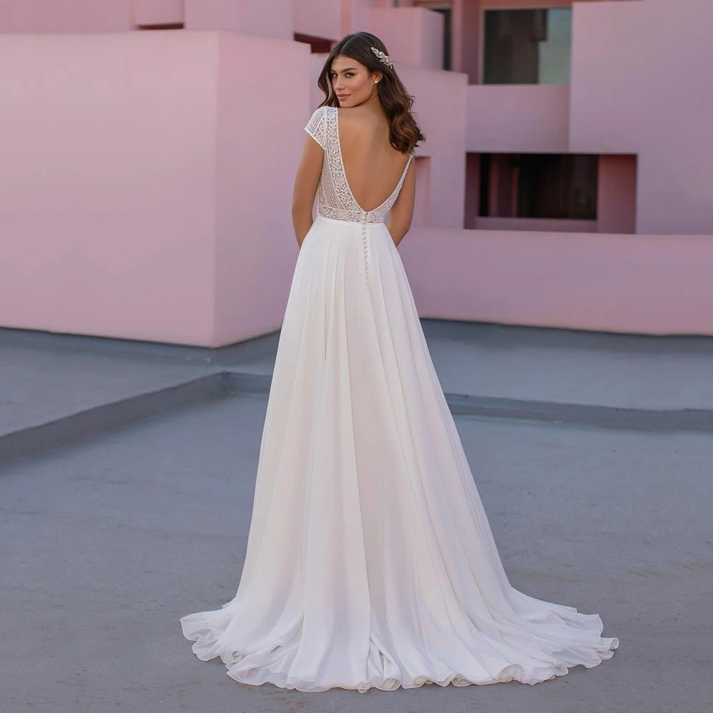 UZN сексуальные кружевные и шифоновые пляжные свадебные платья с открытой спиной цвета слоновой кости с V-образным вырезом и рукавами-крылышками Свадебные платья на заказ
