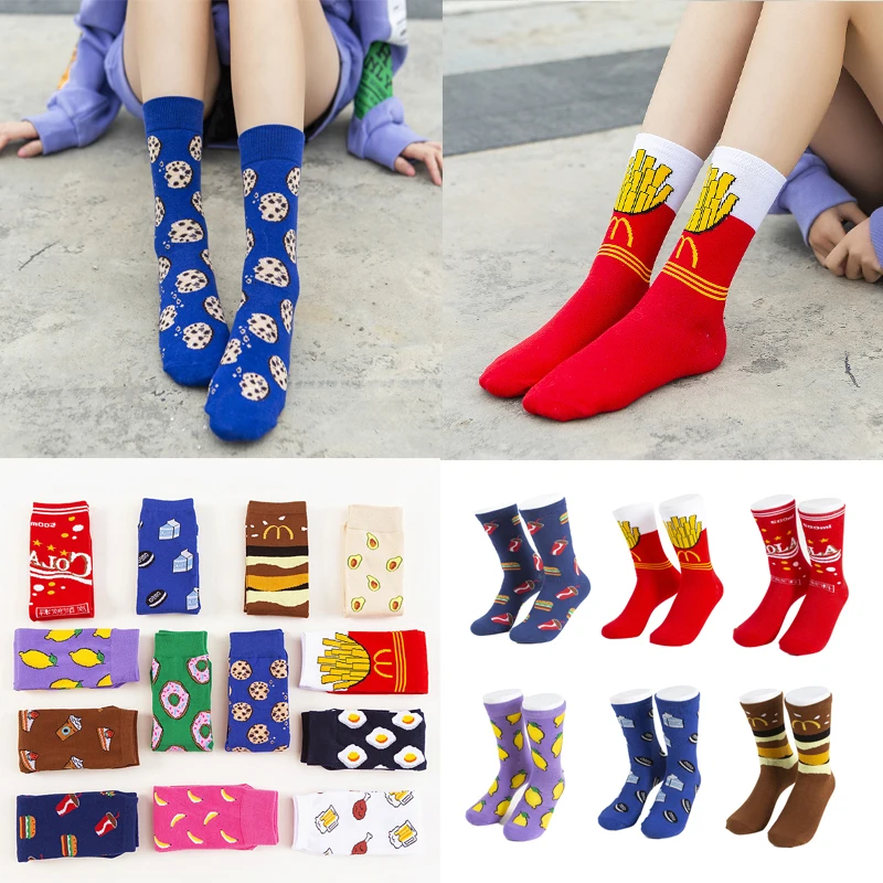 Цветные цветные женские хлопковые носки, картофель фри, кока, фрукт...