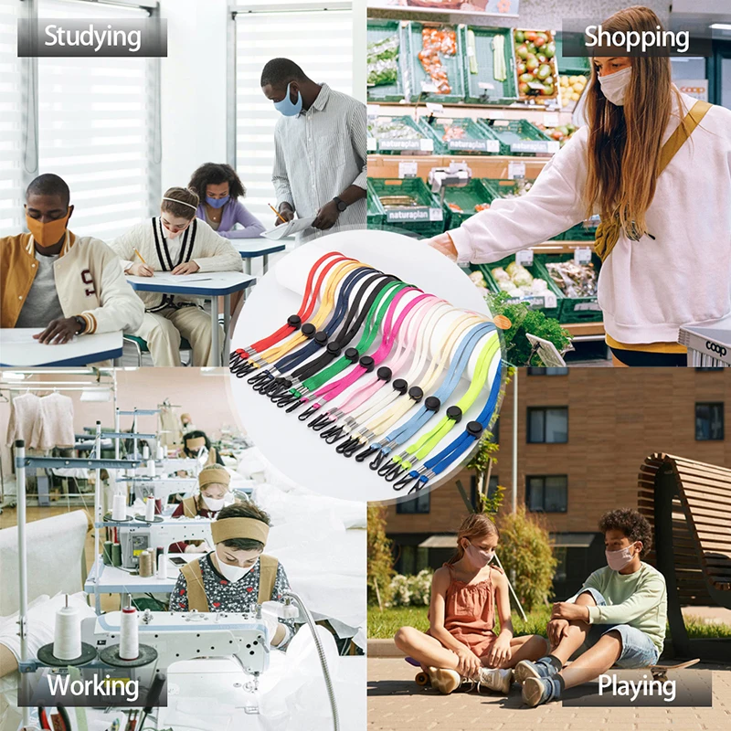 Именно то, что вам нужно для основных сотрудников-Прикрепите Маленькие крючки к эластичным лентам на маске. Как фиксатор очков, Просто наденьте его поверх головы и наденьте как ожерелье. Будет работать с вашей существующей ушной заставкой или повязкой на голову